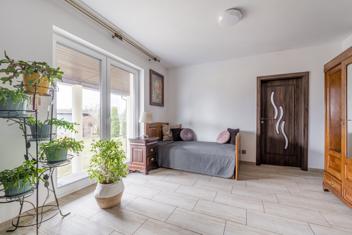 - wykończone i ocieplone poddasze ze skosami, które daje możliwość stworzenia sypialni lub garderoby wg potrzeb. Zainstalowano okna drewniane(połaciowe),