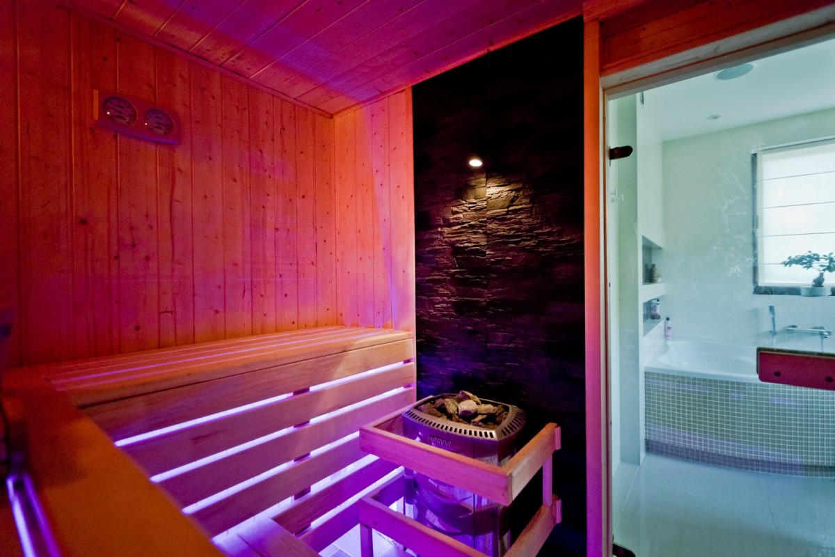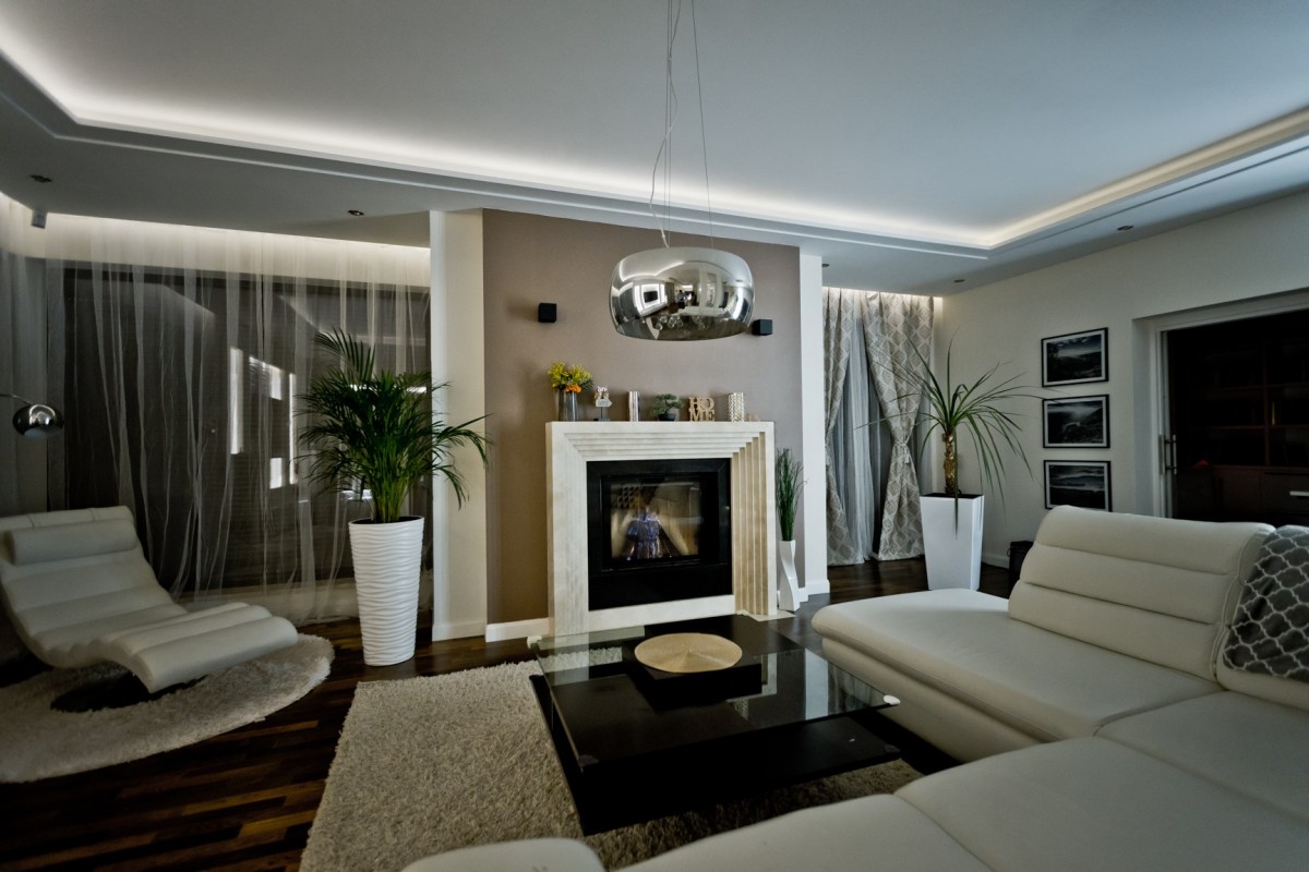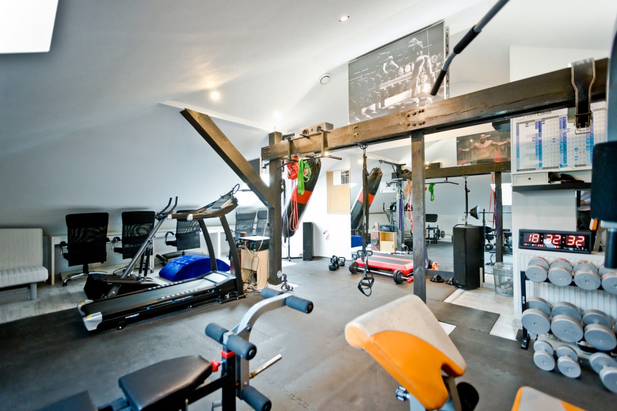 Na parterze znajdują się: salon, jadalnia, kuchnia, gabinet, łazienka gościnna, kotłownia z pralnią oraz garaż dla 2 dużych samochodów. Na pierwszym piętrze: główna sypialnia z łazienką, ekranem kinowym i sauną, 2 dodatkowe sypialnie, w tym jedna z garderobą, łazienka gościnna, 2 balkony (z dwóch stron domu). Na poddaszu: pokój gościnny, pokój techniczny oraz siłownia.