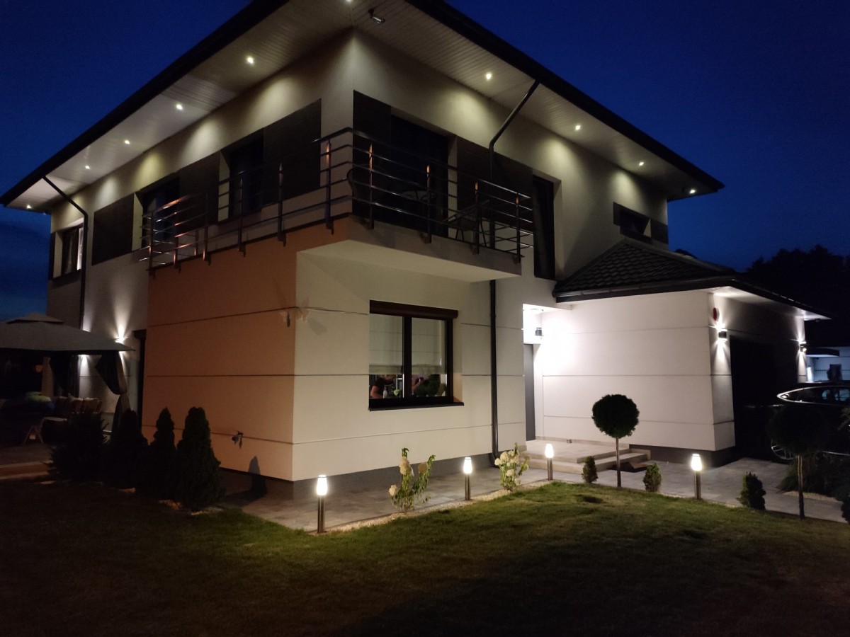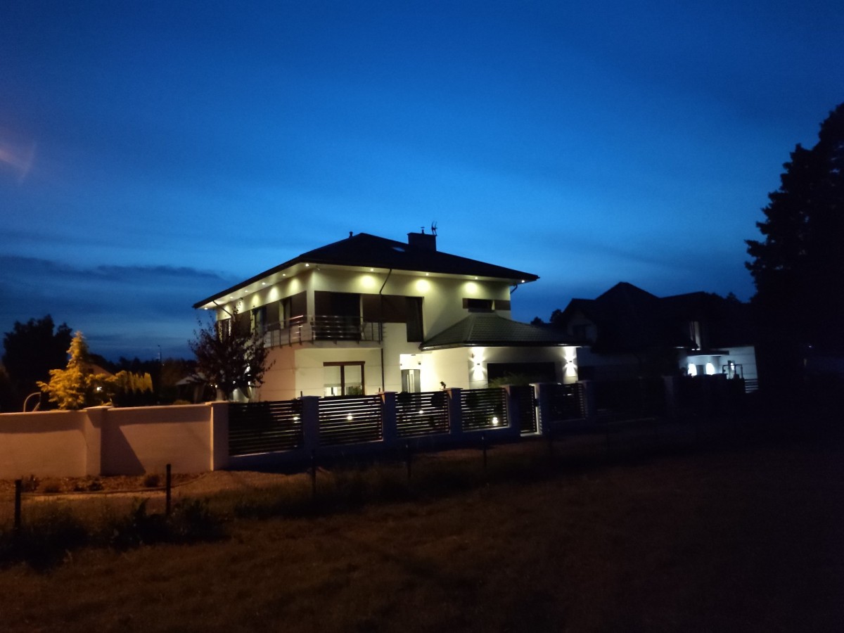 To komfortowy dom, posiadający wszelkie możliwe udogodnienia: ogrzewanie podłogowe, rolety antywłamaniowe, światłowód, videodomofon - na każdym piętrze, z funkcją otwarcia bramy wjazdowej, sterowany zdalnie monitoring wewnętrzny i zewnętrzny, zarządzany zdalnie system alarmowy, zewnętrzne oświetlenie domu z czujkami zmierzchu, sterowane przez system inteligentnego domu, marmurowy kominek, który po rozpaleniu w 10 minut ogrzewa cały parter, system automatycznego podlewania zintegrowany z systemem inteligentnego domu.