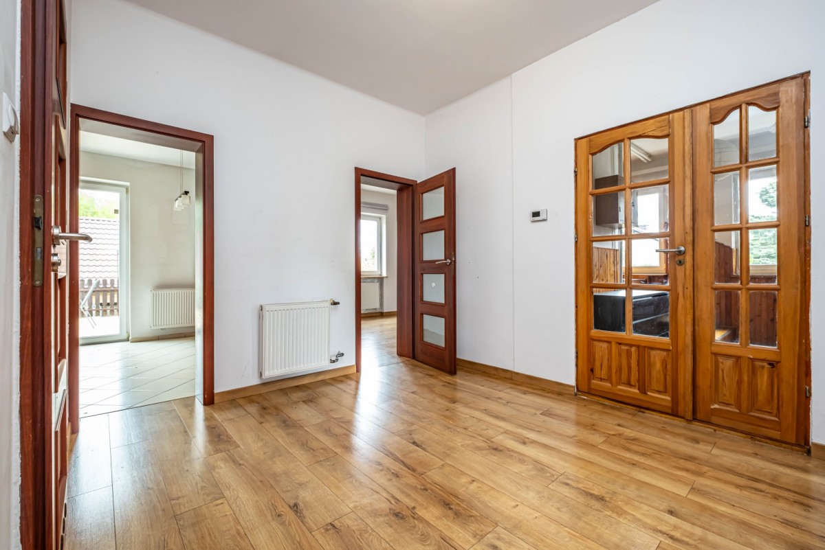 Piękny ogród z licznymi nasadzeniami i drzewami owocowymi. Ogromnym atutem tej nieruchomości jest możliwość dowolnej aranżacji wnętrz i przebudowy domu. Można zaadoptować także na siedzibę firmy lub prowadzić działalność komercyjną.