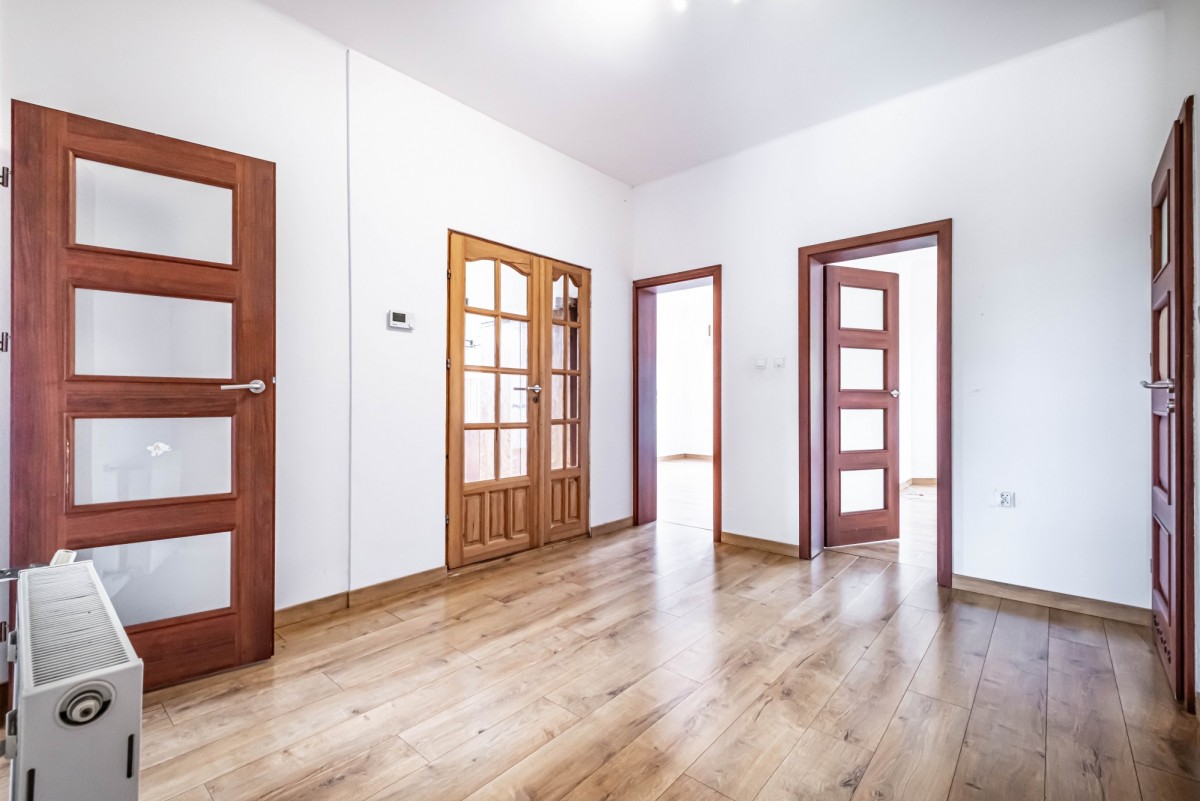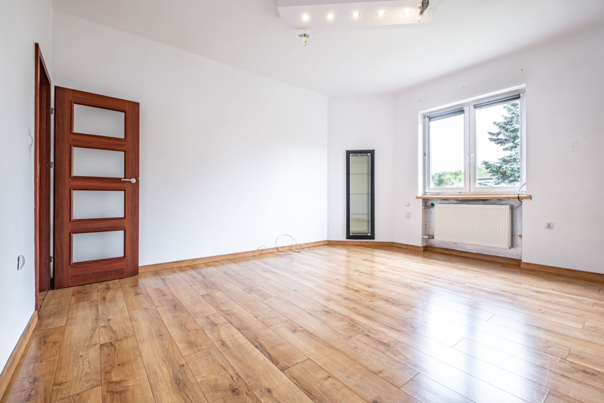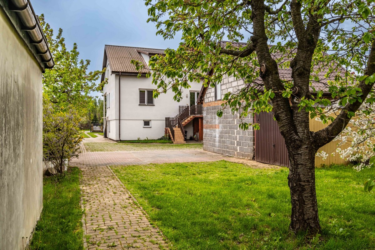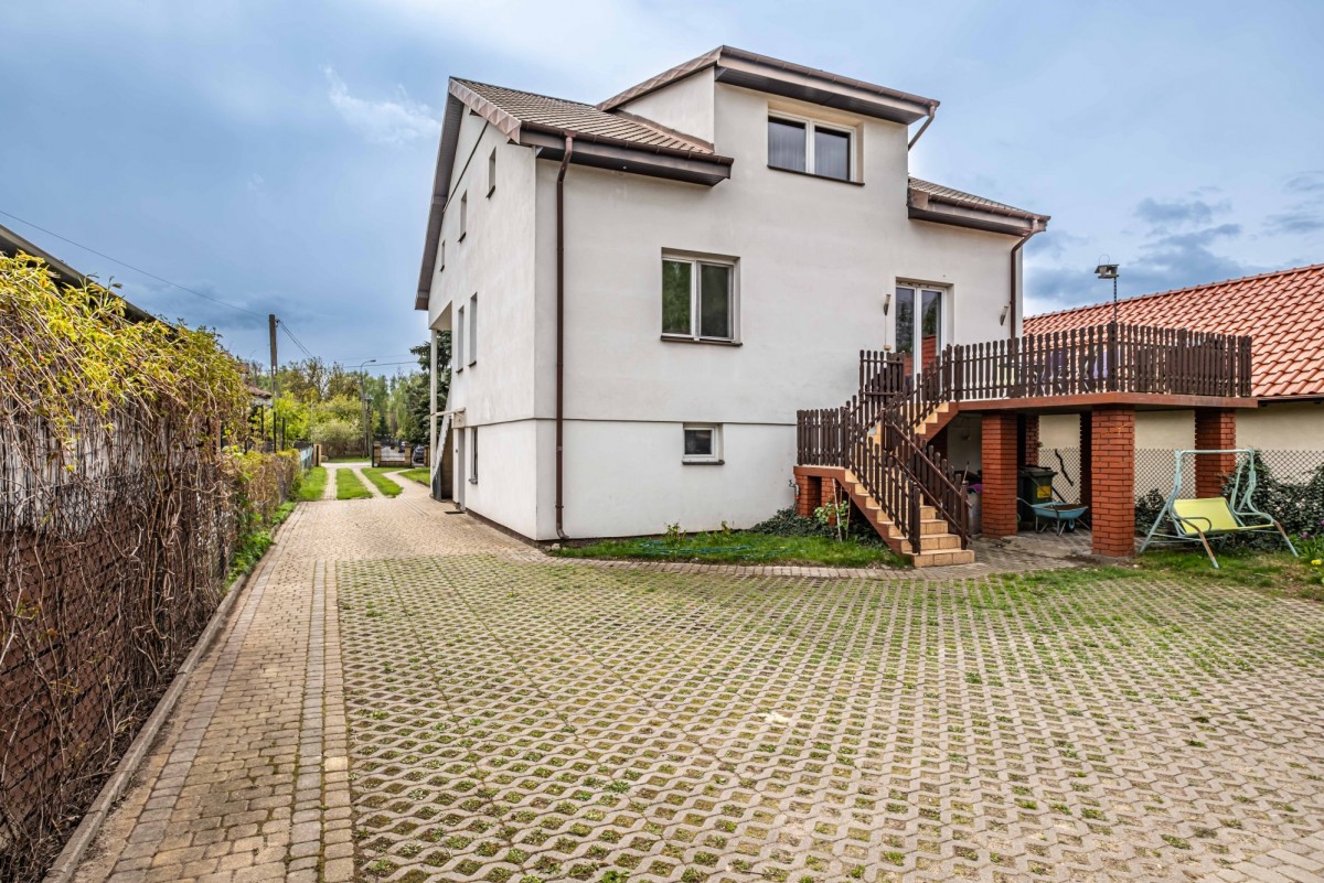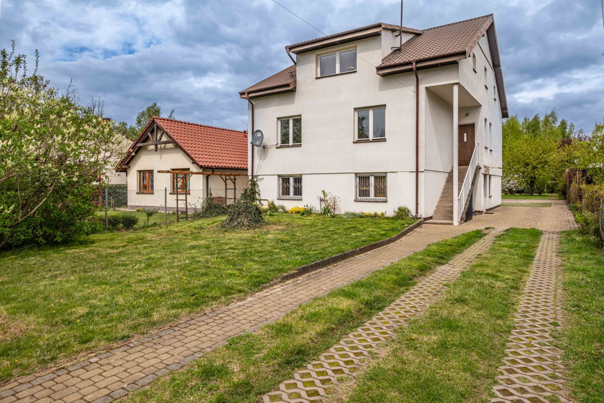 Budynek trzykondygnacyjny. Teren częsciowo ogrodzony z bramą otwieraną na pilota oraz wybrukowanym podjazdem i miejscem postojowym na 4-5 samochodów. Dodatkowo murowany wolnostojący garaż (16,6 m2).