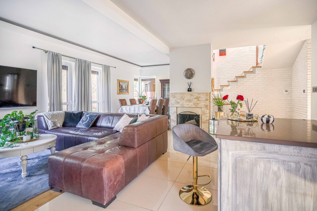 Z salonu są trzy bezpośrednie wyjścia: na ogród, na taras oraz na ogródek od frontu budynku.