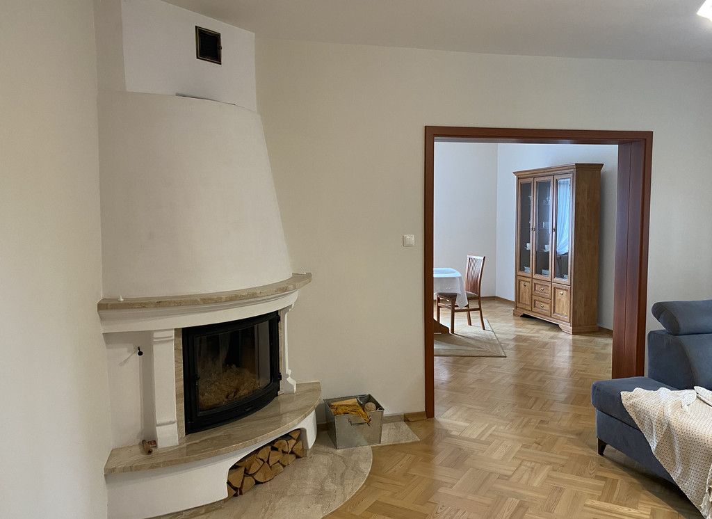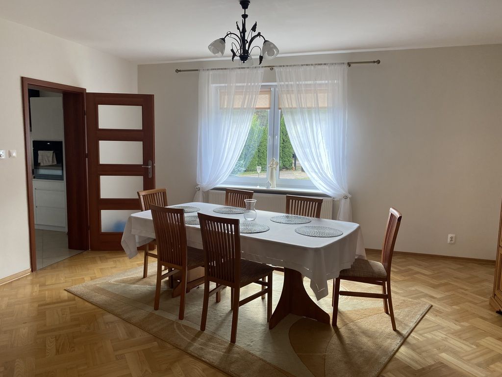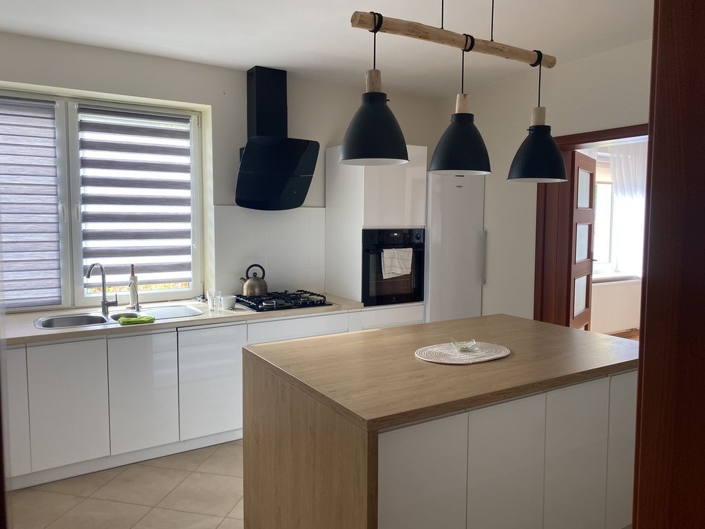 Na parterze domu znajduje się funkcjonalna kuchnia z pojemną zabudową oraz wyspą, salonem z pięknym kominkiem (bez płaszcza - grawitacyjne ogrzewanie całego domu) połączony z dużą wygodną jadalnią, łazienka z prysznicem, holem z trzema szafami oraz pralnią