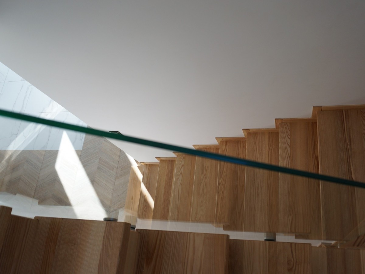 Na piętro prowadzą nas drewniane schody ze szklaną balustradą oraz doświetleniem z widokiem na starodrzew. Znajdują się tu cztery sypialnie: Sypialnia master z garderobą, wyjściem na balkon oraz łazienką z wolnostojącą wanną i miejscem na prysznic. Sypialnia 2 z wyjściem na taras, Sypialnia 3 z balkonem francuskim, Sypialnia 4, Łazienka z wanną z hydromasażem, Garderoba oraz przestrzeń do wspólnego odpoczynku, którą można zaaranżować na kolejny pokój.