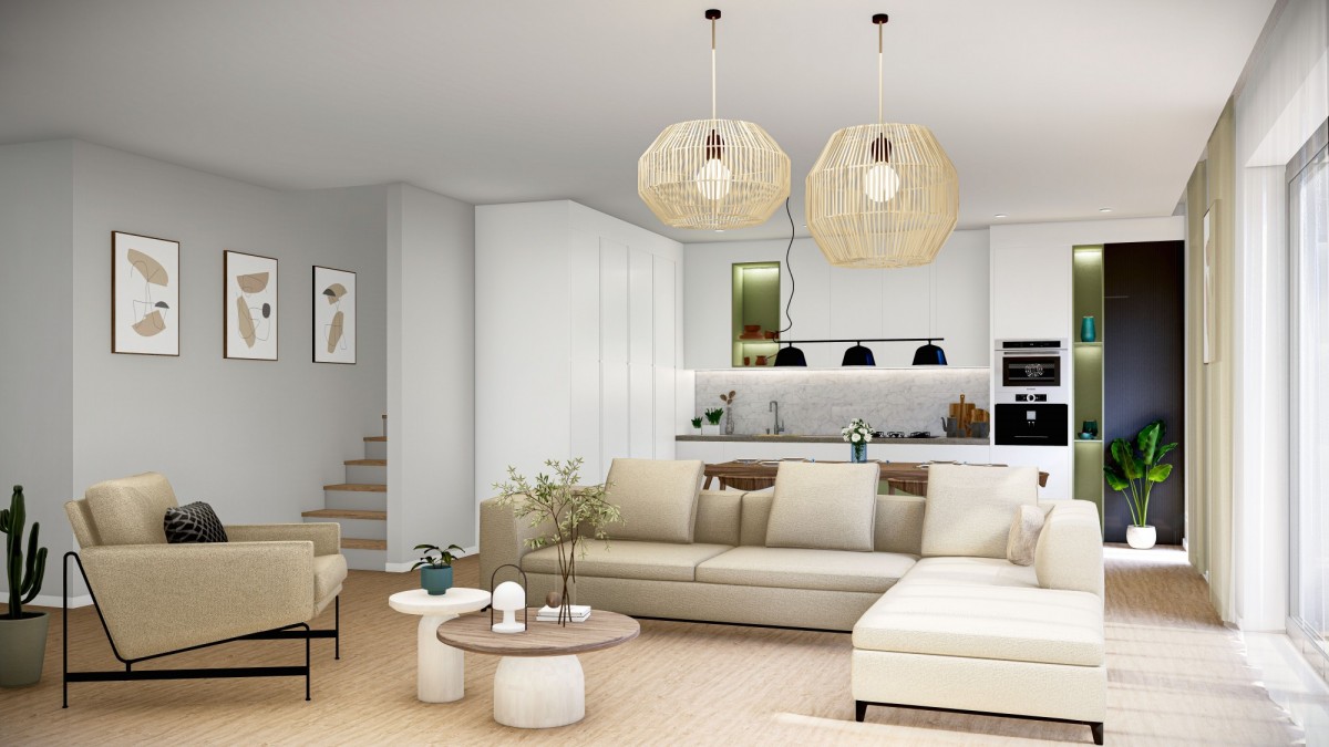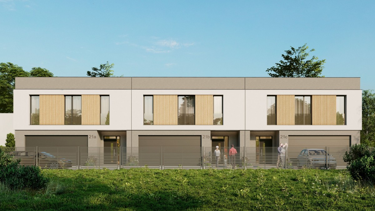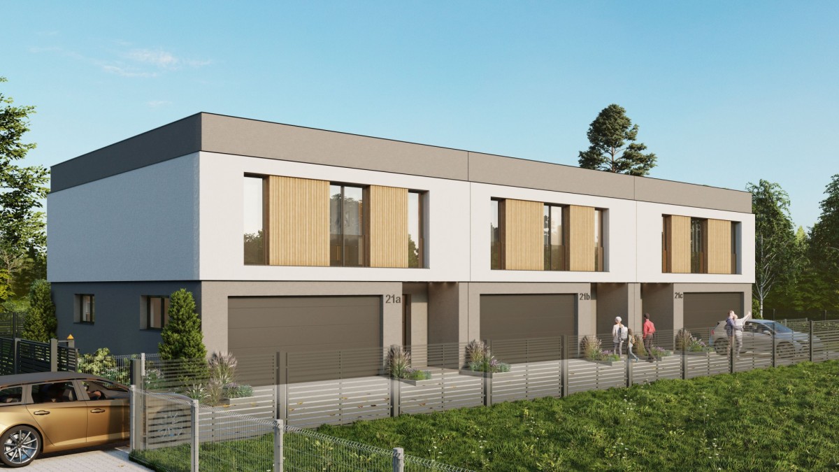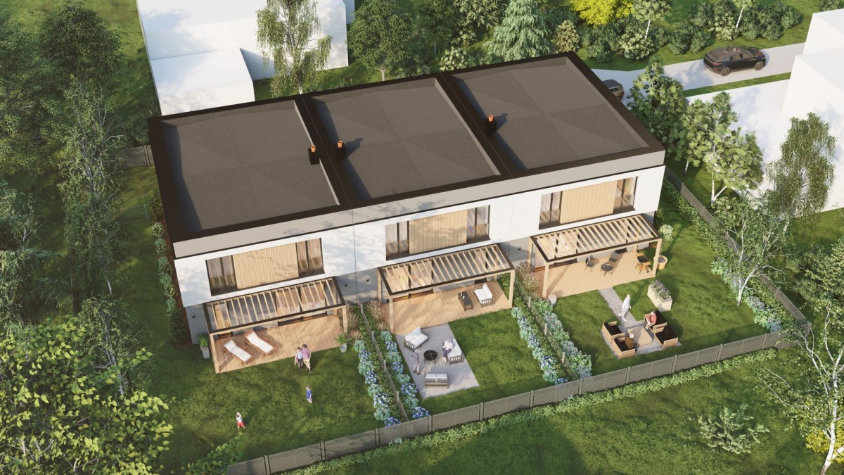 Nowoczesny segment w zabudowie szeregowej (budynek skrajny na odrębnej działce plus udziały w drodze wewnętrznej), w centrum Józefosławia k/Warszawy, w otulinie Lasu Kabackiego.