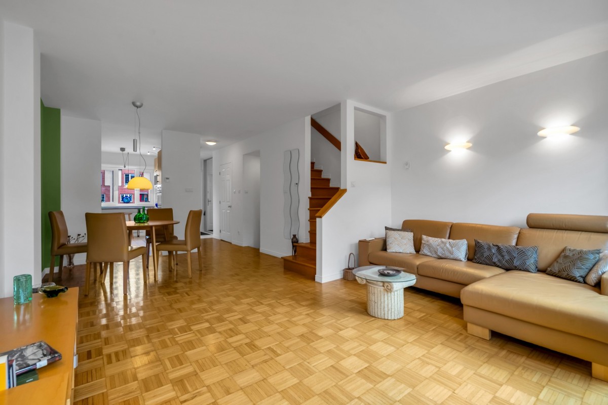 Na parterze jest duży, słoneczny salon z bezpośrednim wyjściem na taras oraz ogródek, przestronna kuchnia z jadalnią ( kuchnia w pełni wyposażona w sprzęt AGD) oraz toaleta, garderoba i przedpokój zabudowany szafami wnękowymi.