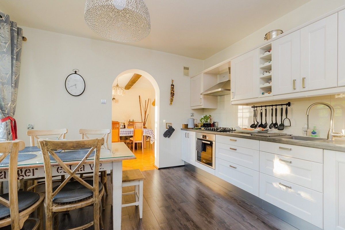 - jadalnia oddzielona od salonu dwuskrzydłowymi drzwiami,