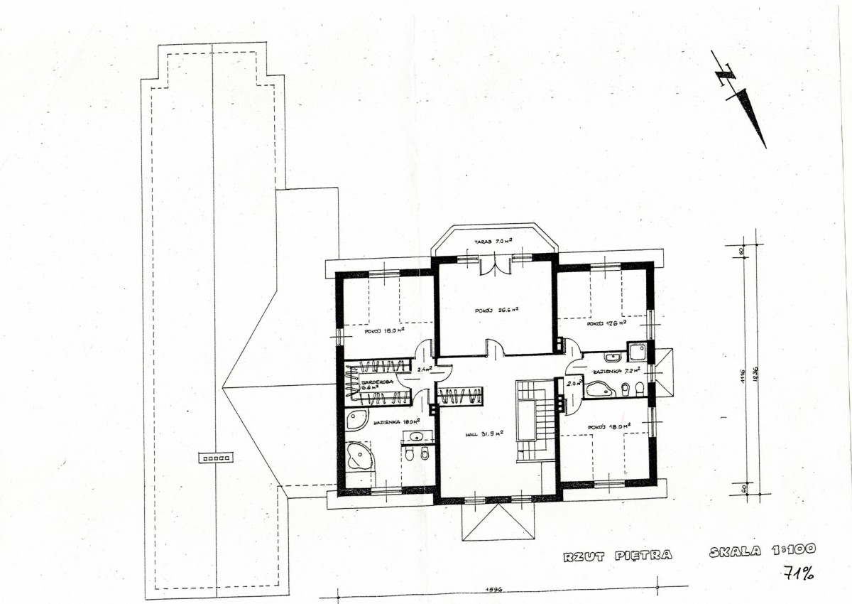 Oprócz tego mamy jeszcze spory hall (31,5 m2), który idealnie nada się na drugi salon, pomieszczenie telewizyjne lub bawialnie.