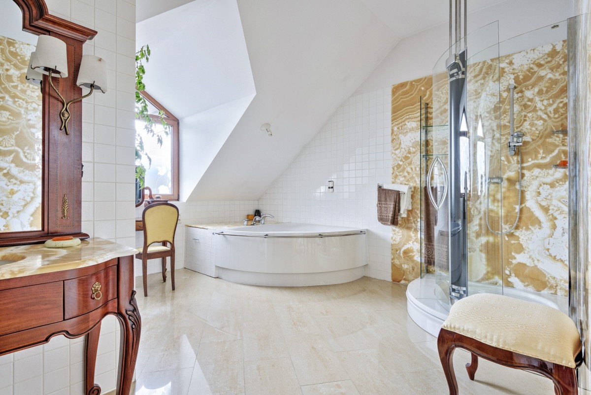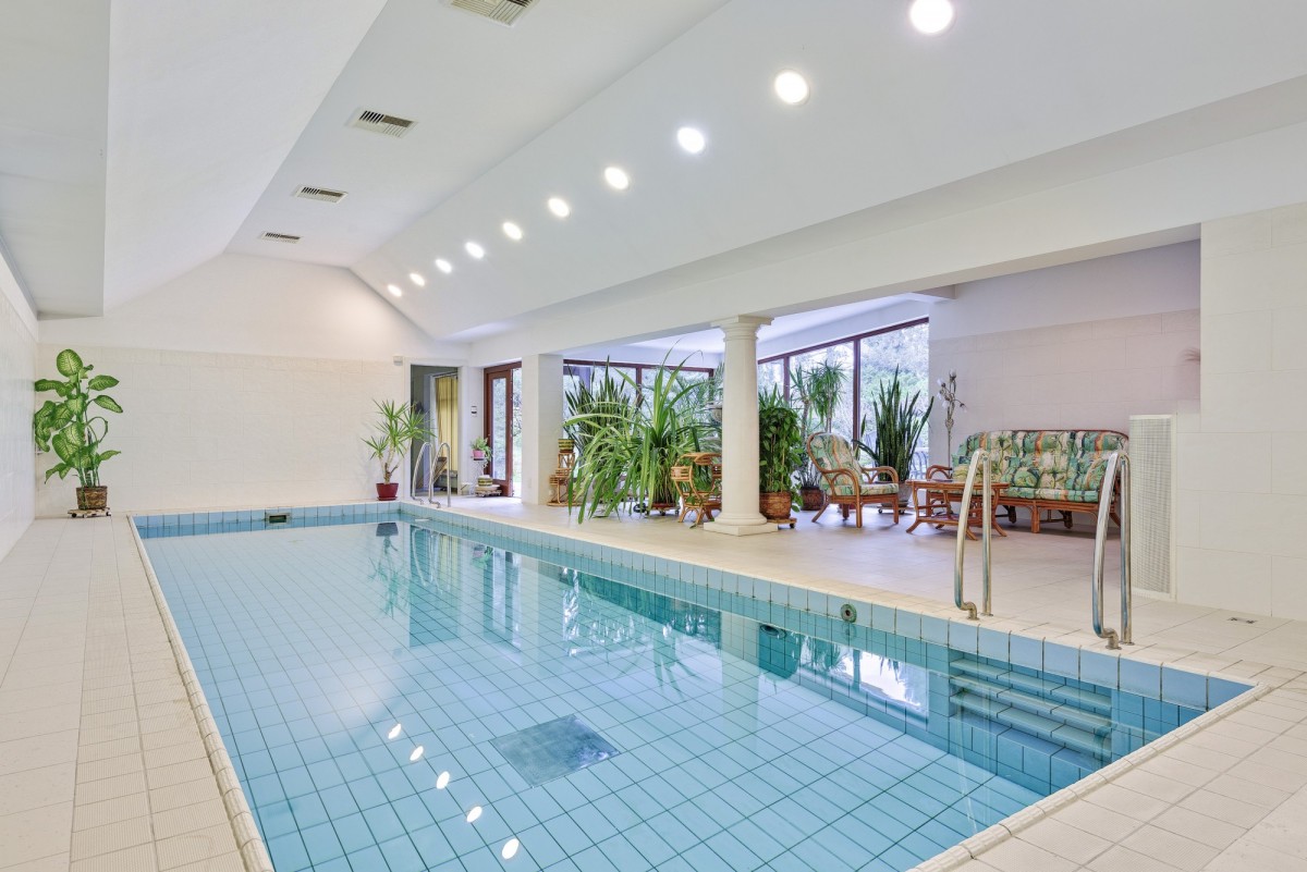 W rezydencji mamy również salę z basenem (92,9 m2) z osobną łazienką (5,6m2), salą do fitnessu (15, 3 m2) i sauną (5,1 m2). Idealne miejsce dla dzieci, żeby zachęcić je do aktywności. Świetne miejsce dla dorosłych, którzy doceniają luksus pływania cały rok i korzystania z sauny. Na pewno wyjątkowe miejsce.