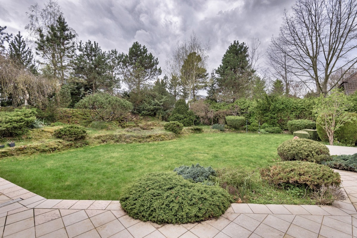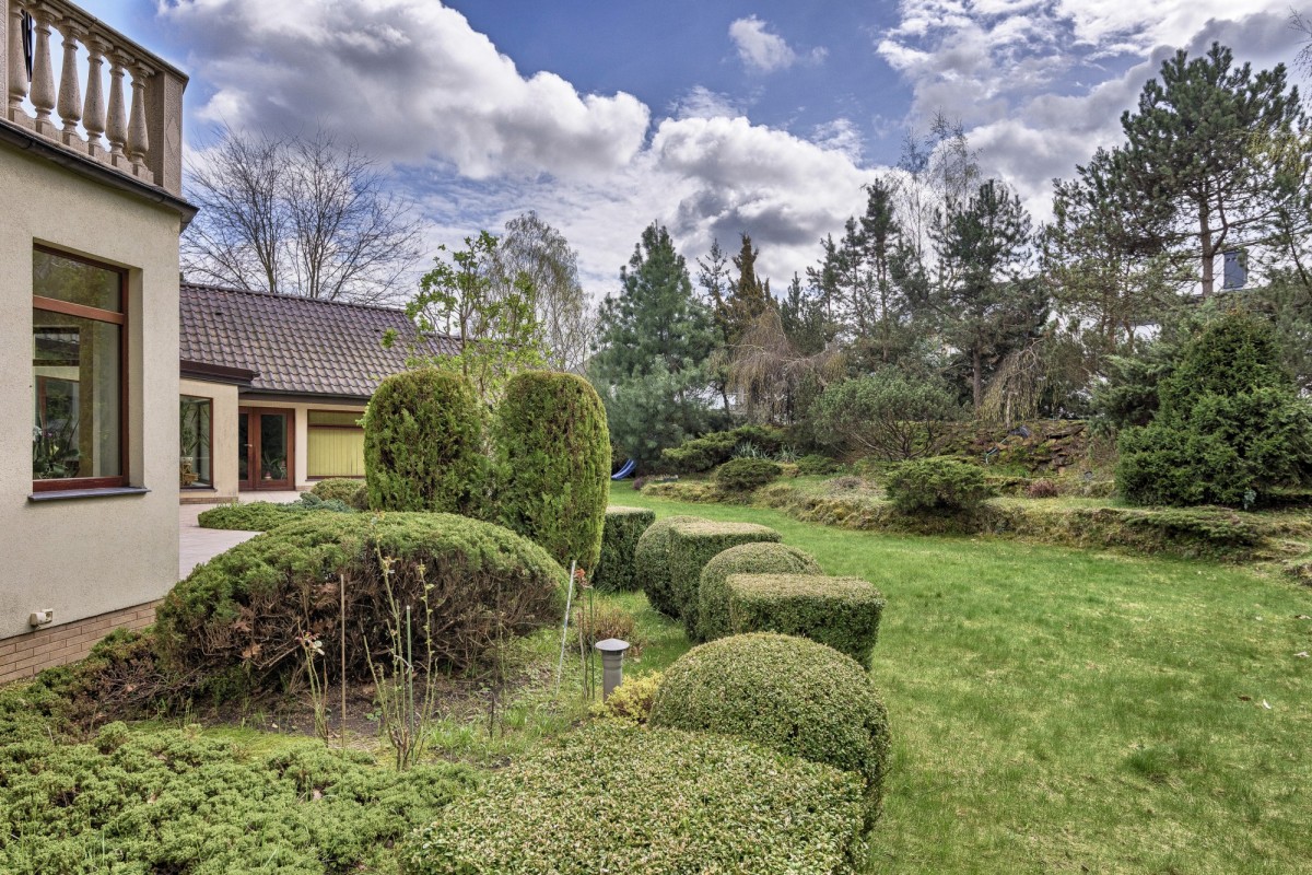 Jej powierzchnia wynosi 1443 m2. Została pięknie zagospodarowana licznymi drzewkami i krzewami. Największym atutem jest to, że jest idealnie odizolowana od sąsiadów za pomocą imponującej wielkości skalniaka. Jednocześnie daje poczucie odseparowania i jest przyjemny dla oka.