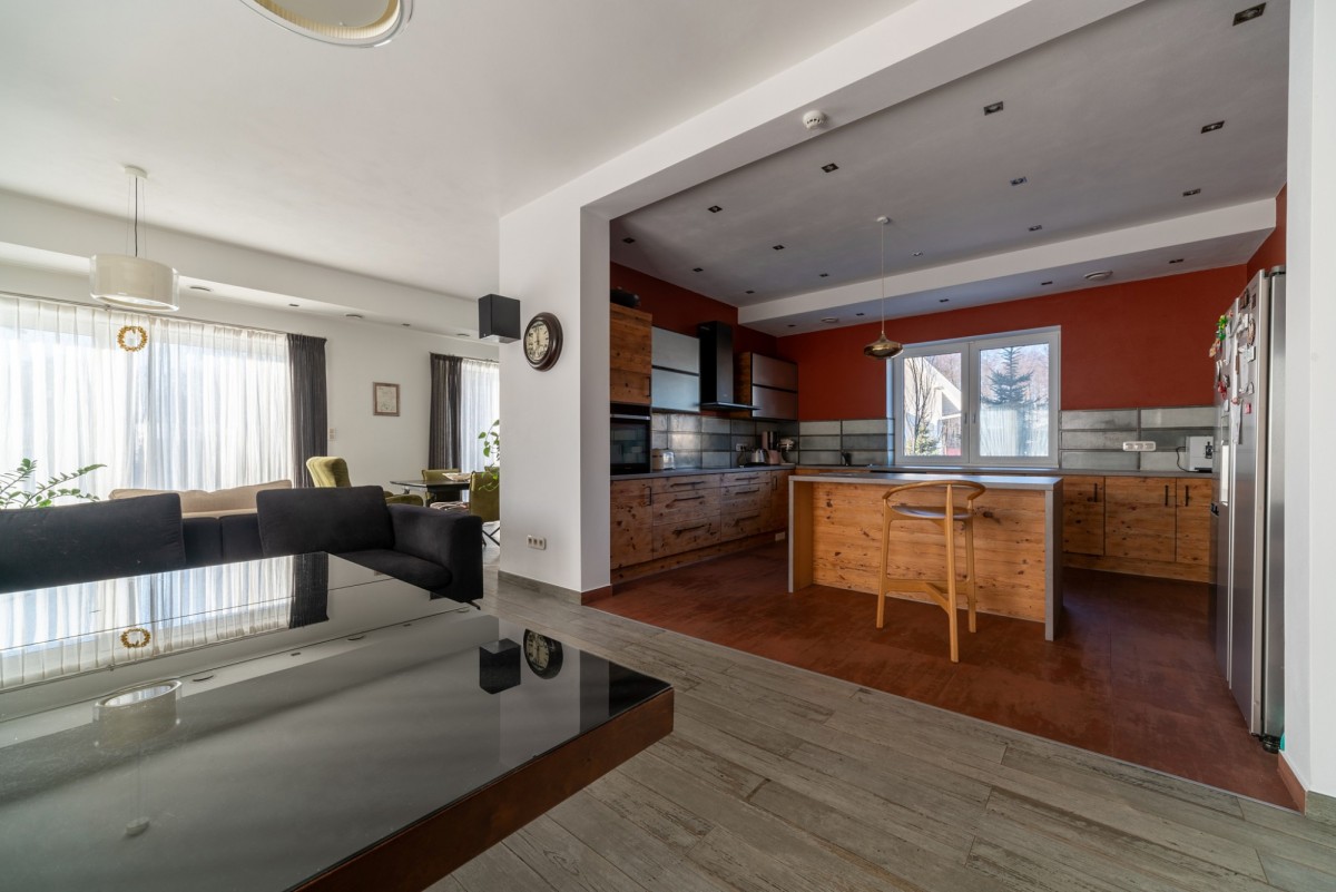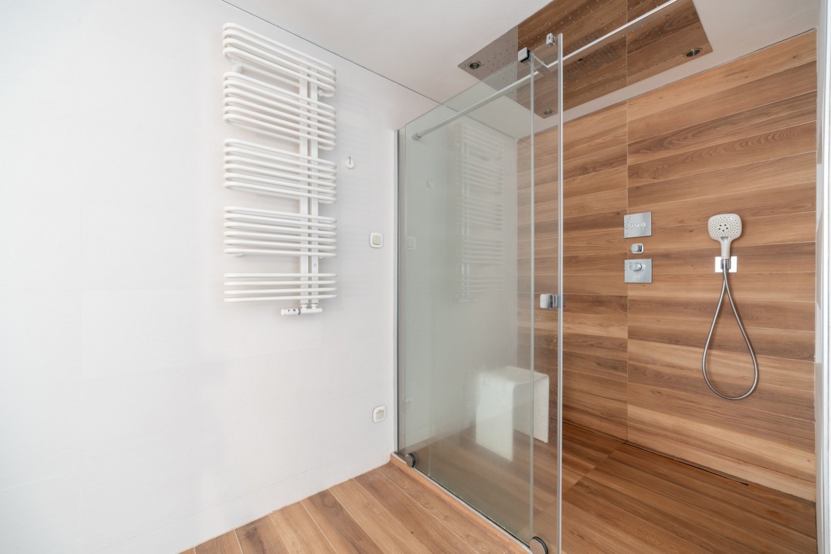 Na parterze i piętrze na całej powierzchni znajduje się ogrzewanie podłogowe włącznie z podłogą pod prysznicami; Na domu zainstalowane są również panele fotowoltaiczne; oprócz tego jest jeszcze pompa ciepła gruntowa. Wszystko to wpływa na niskie koszty utrzymania 250m2 powierzchni domu.