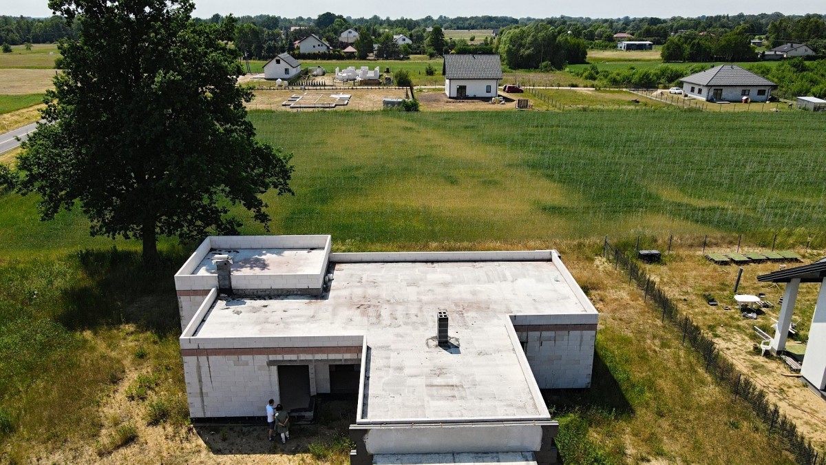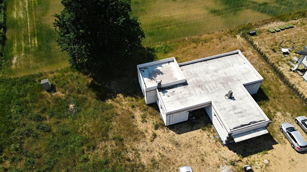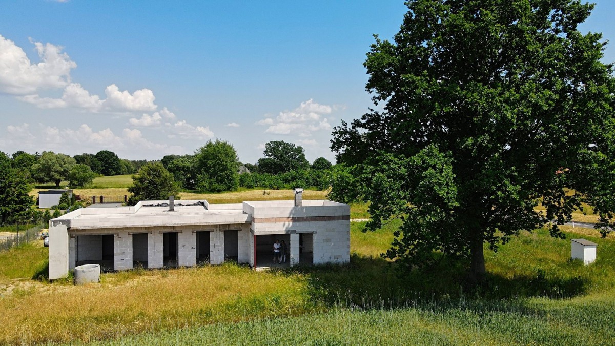 Dostępny na tej przestrzeni dom (ponad 150 m2), aktualnie znajduje się w stanie surowym otwartym co umożliwia zagospodarowanie go zgodnie z własnymi oczekiwaniami. Jego projekt zakłada funkcjonalność, nowoczesność, energooszczędność z nienachalnym wkomponowaniem w otaczającą przyrodę. Znajdują się w nim: kuchnia, spiżarnia, trzy sypialnie ( w tym jedna z własną łazienką i garderobą), otwarty przestronny salon, łazienka, wiatrołap, garaż na dwa stanowiska, pomieszczenie gosp., kotłownia.