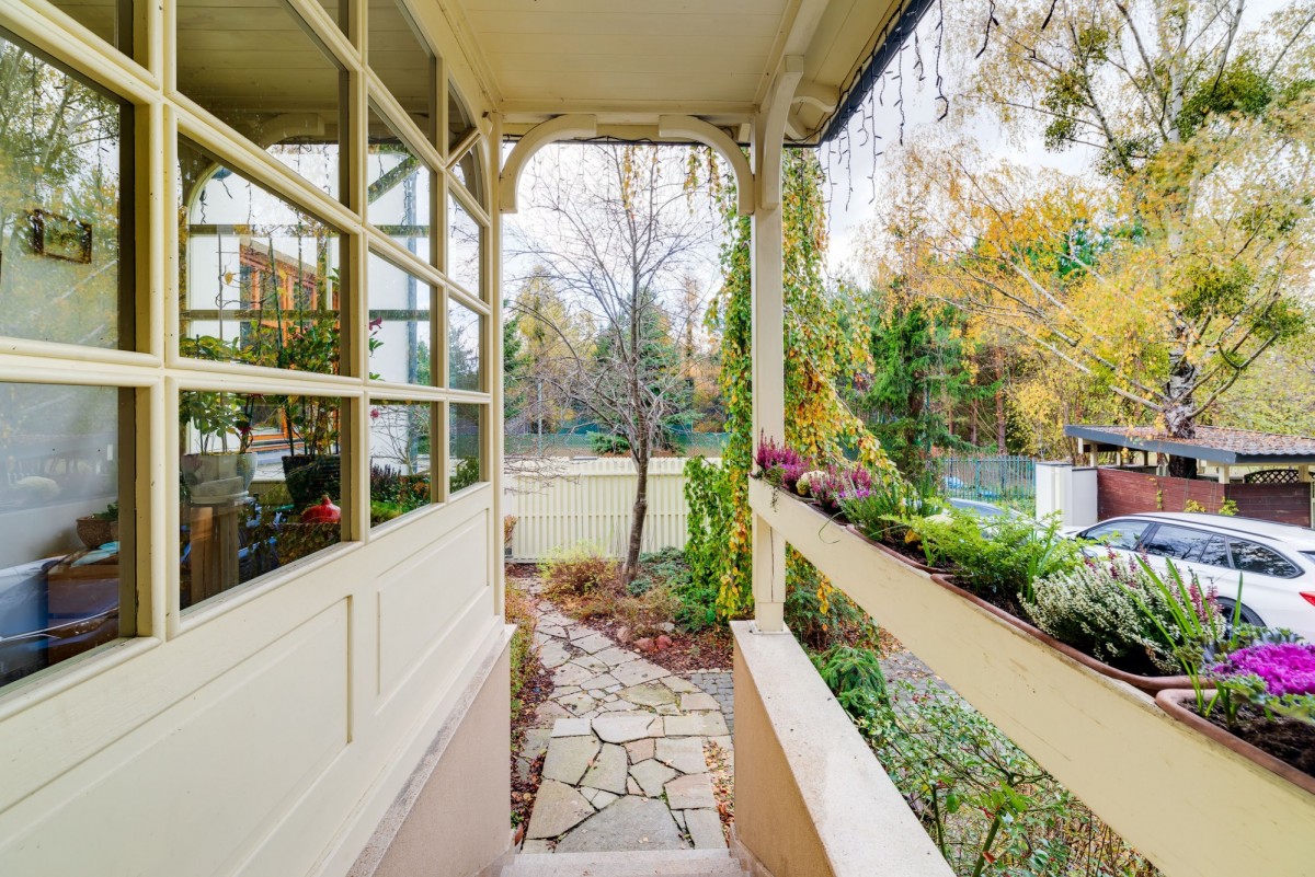 Na werandzie znajduje się wejście do oddzielnej części mieszkalnej składającej się z: kuchni, dwóch pokoi oraz łazienki. Tę część domu łatwo jest połączyć z głównym budynkiem.