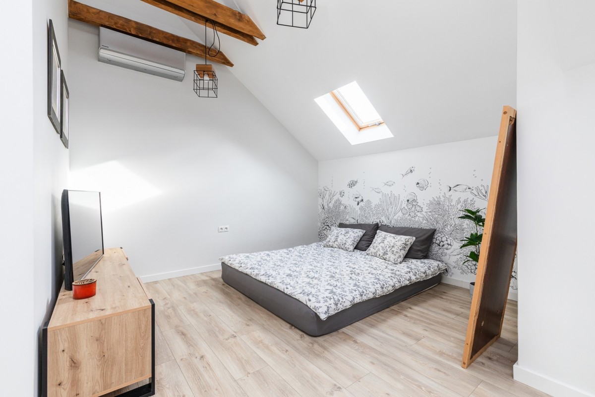 Łączna powierzchnia 108 mkw, w tym 74 mkw powierzchni użytkowej oraz 34 mkw nieużytkowego, ale zagospodarowanego na pokój z prywatną łazienką poddasza.