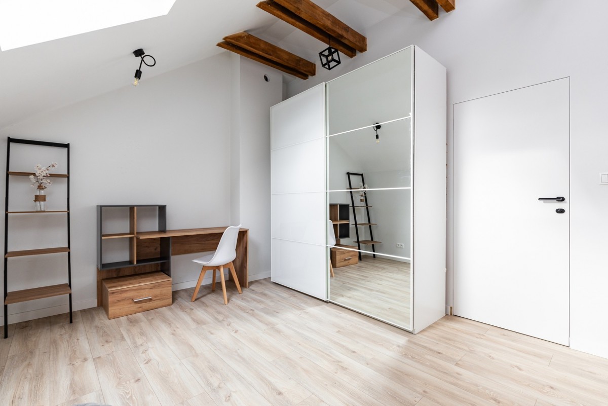 - Poddasze nieużytkowe: Pokój ze skosami (24 mkw), Łazienka z prysznicem (7.5 mkw)