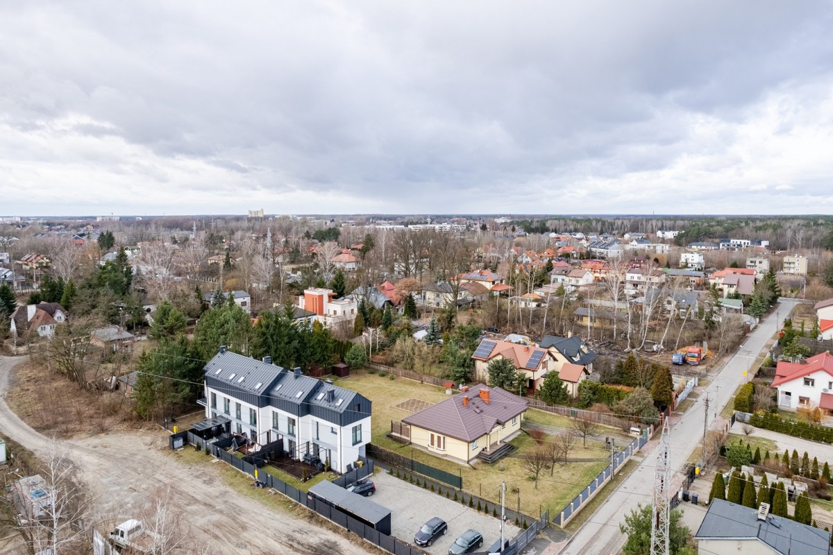 Wejście do lasu znajduje się kilkanaście metrów od domu. Jezioro Czarne 5 min spacerem. Dogodna infrastruktura okolicy. Sklep spożywczy 650 m, przedszkole 550 m, nowoczesna szkoła nr 4, 1,5 km, apteka 2 km, Lidl 2,3 km, przystanek autobusowy 1,8 km, siłownia plenerowa 300 m. Doskonała komunikacja z Warszawą, trasą E67.