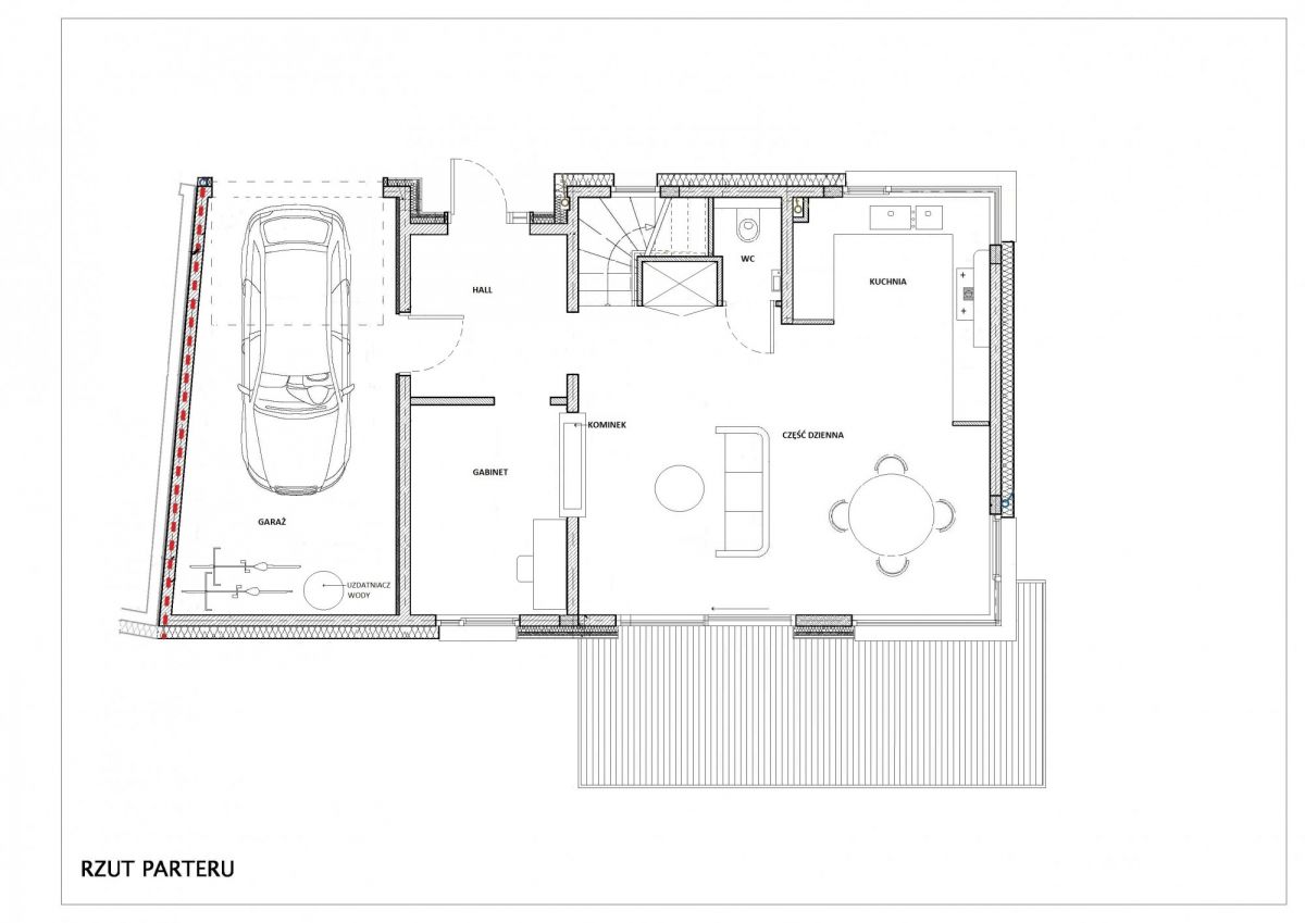 * drugą część parteru możemy nazwać strefą roboczą, mieści się tutaj duży garaż.