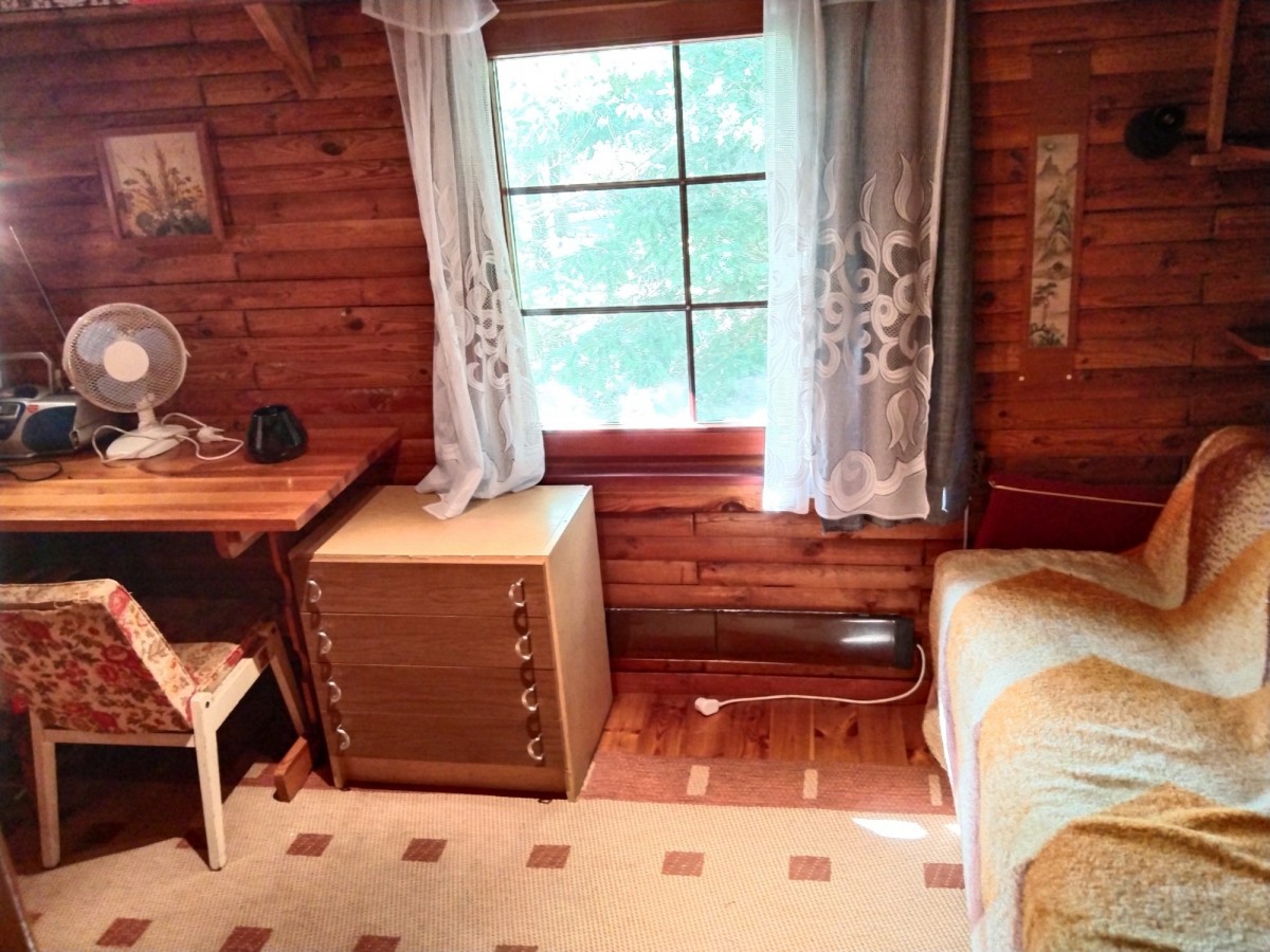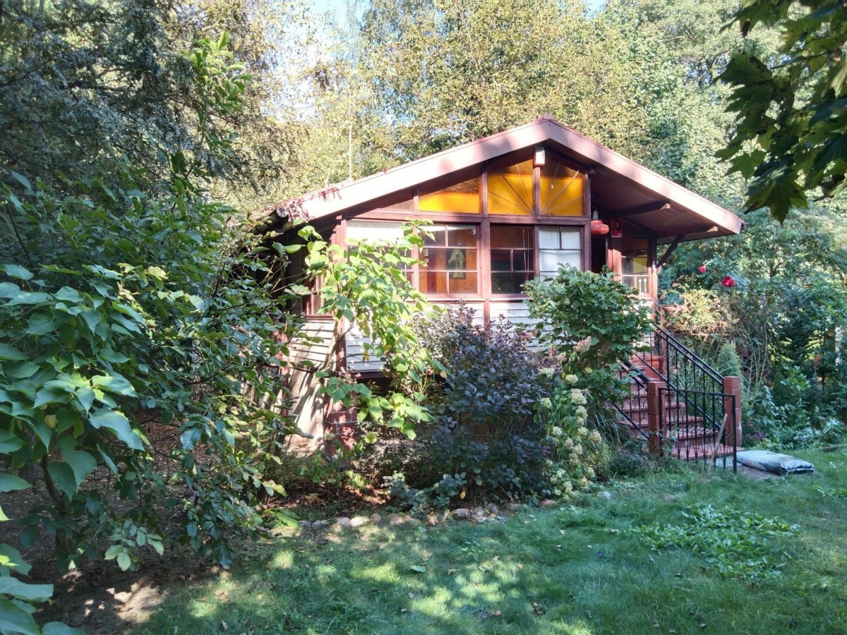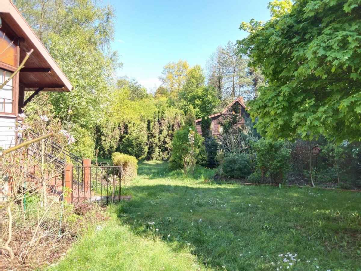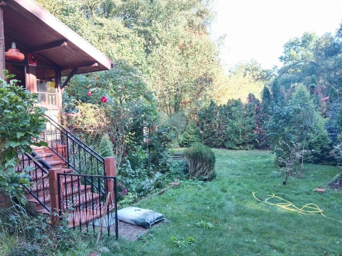 Duża działka 2040 m2 z uroczym domem letniskowym w lesie blisko rzeki (10 minut spacerem).