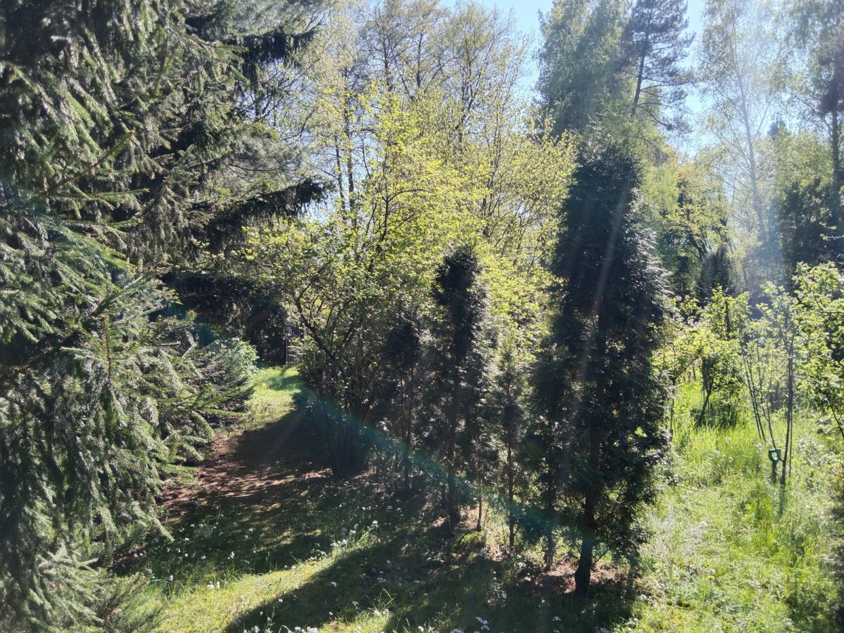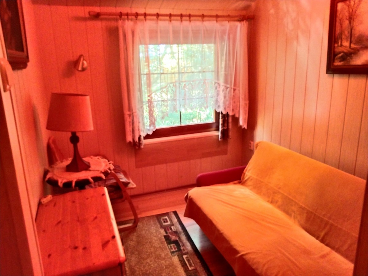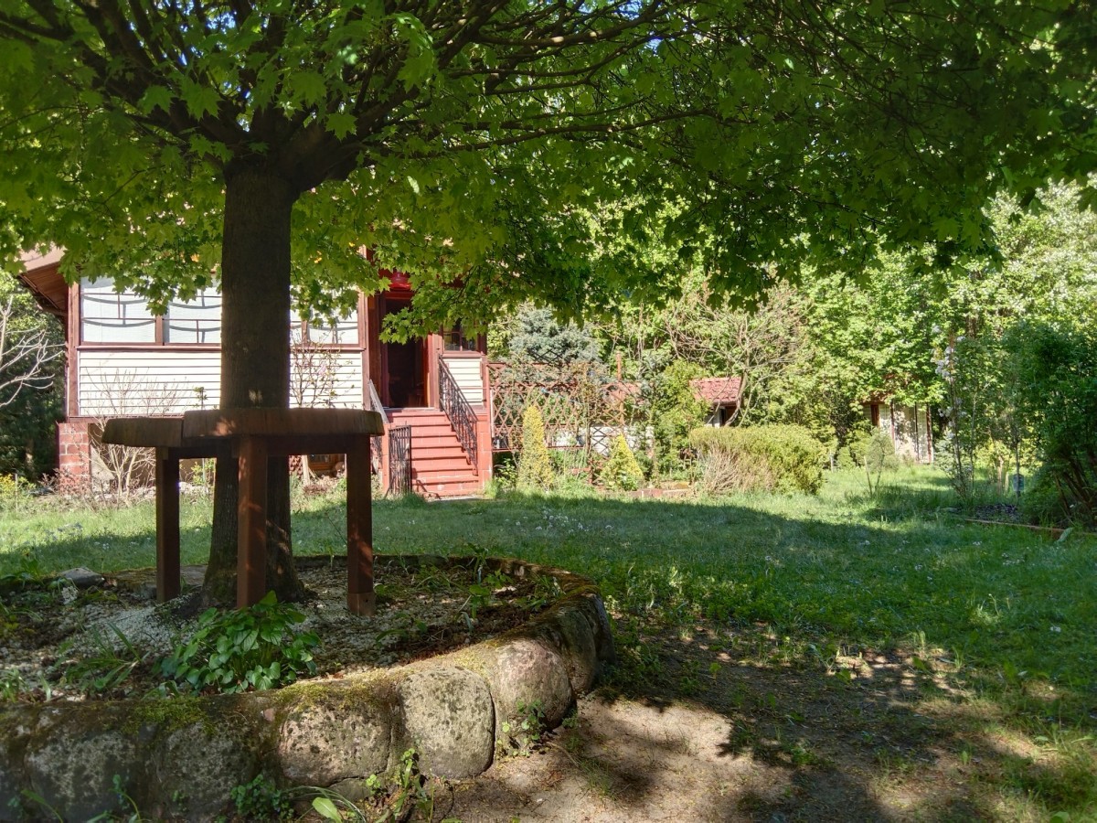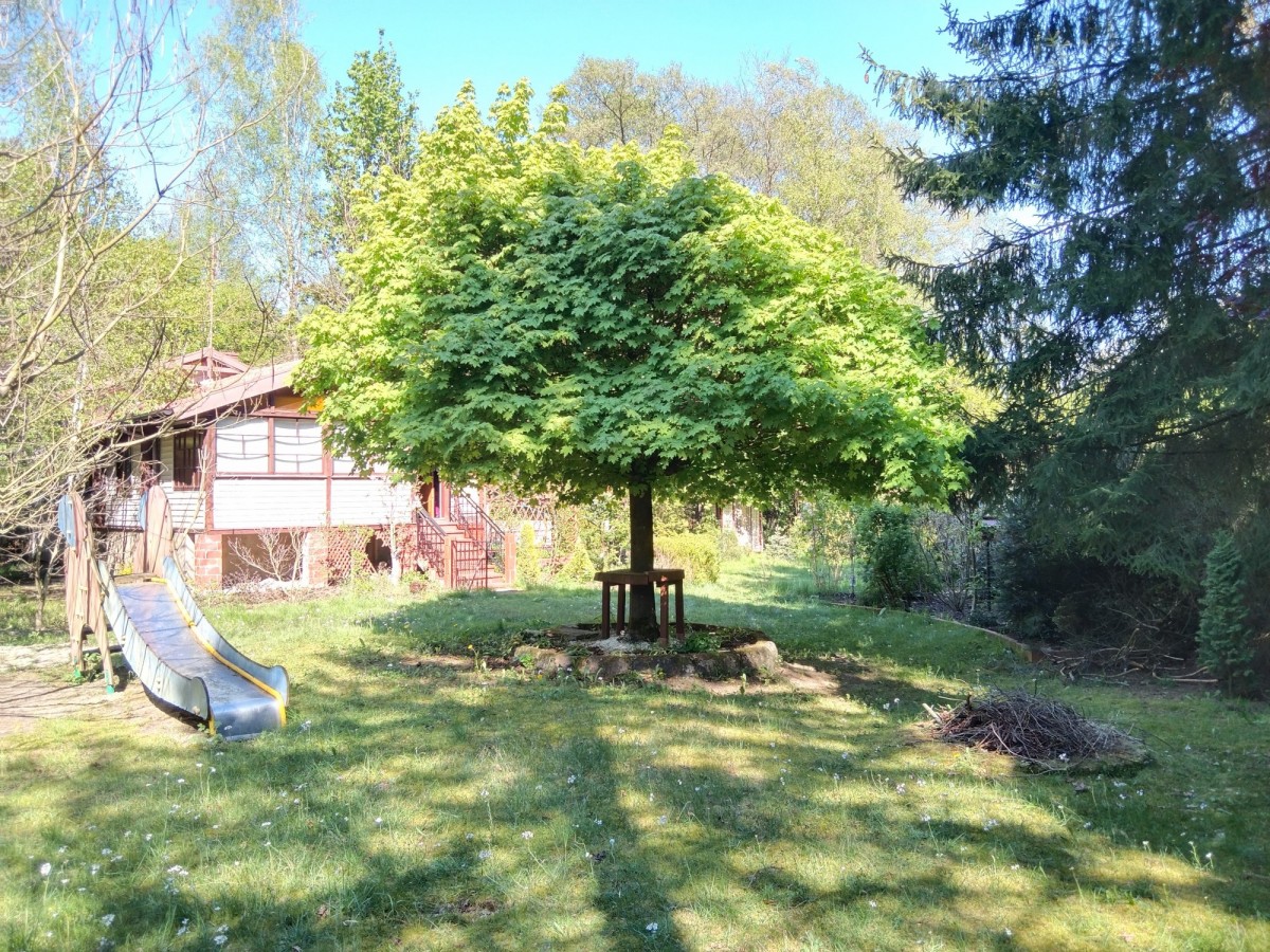 Duża działka 2040 m2 z uroczym domem letniskowym w lesie blisko rzeki (10 minut spacerem).