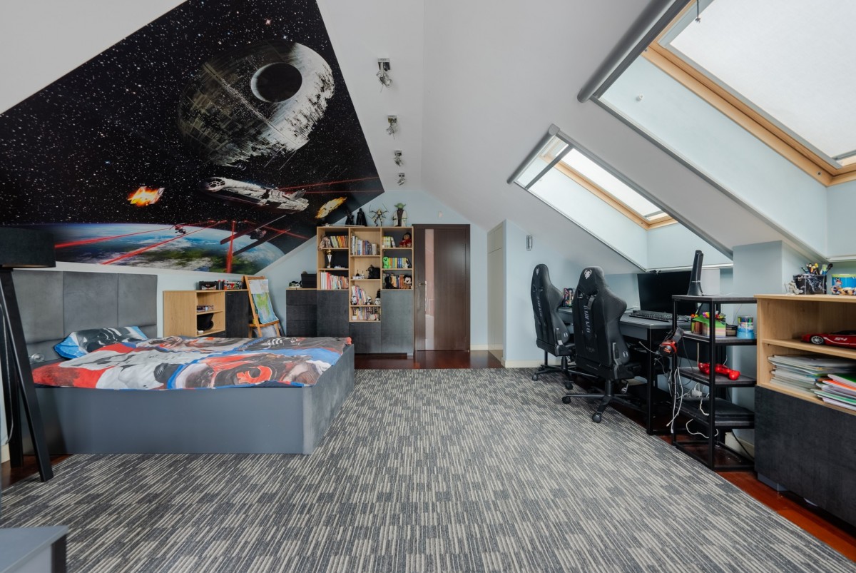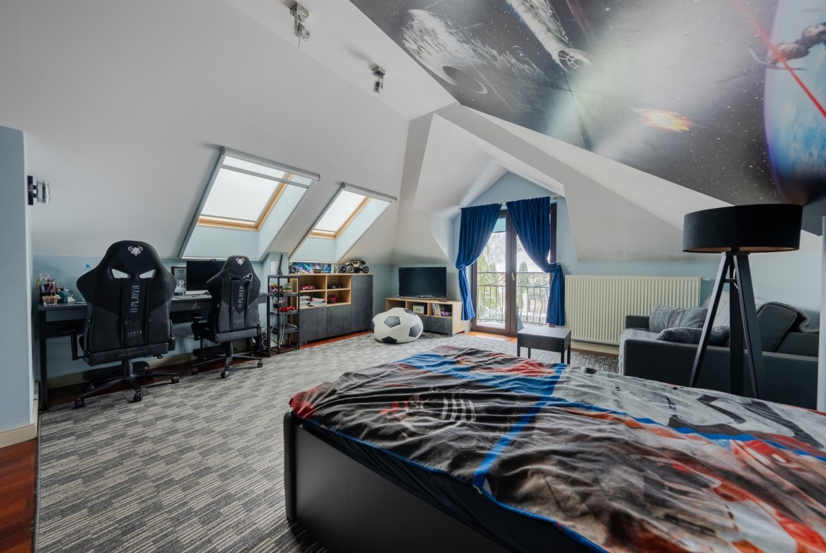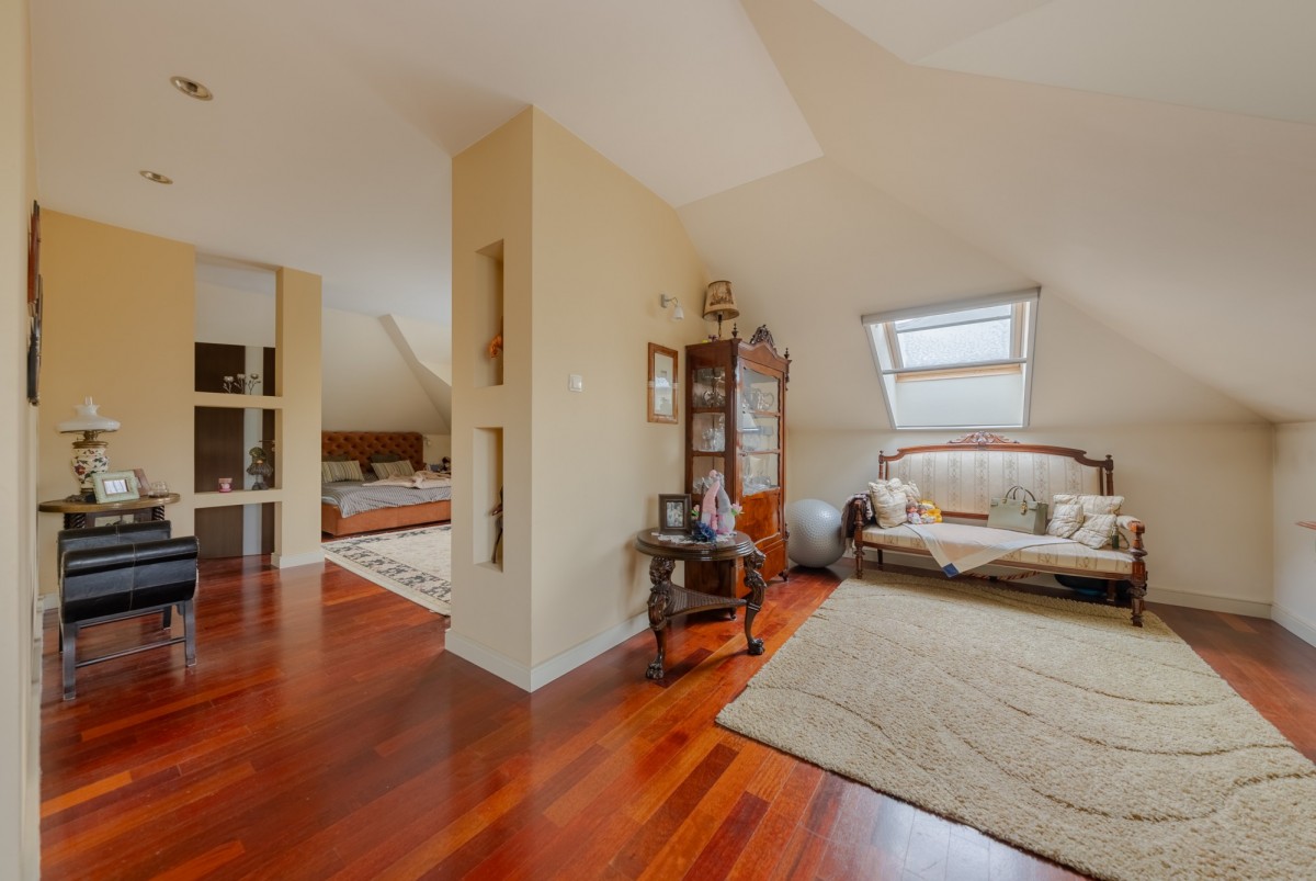- Duża sypialnia podzielona na dwie strefy ( cześć do pracy i do odpoczynku) z wejściem do łazienki z wanna i prysznicem oraz garderoby,