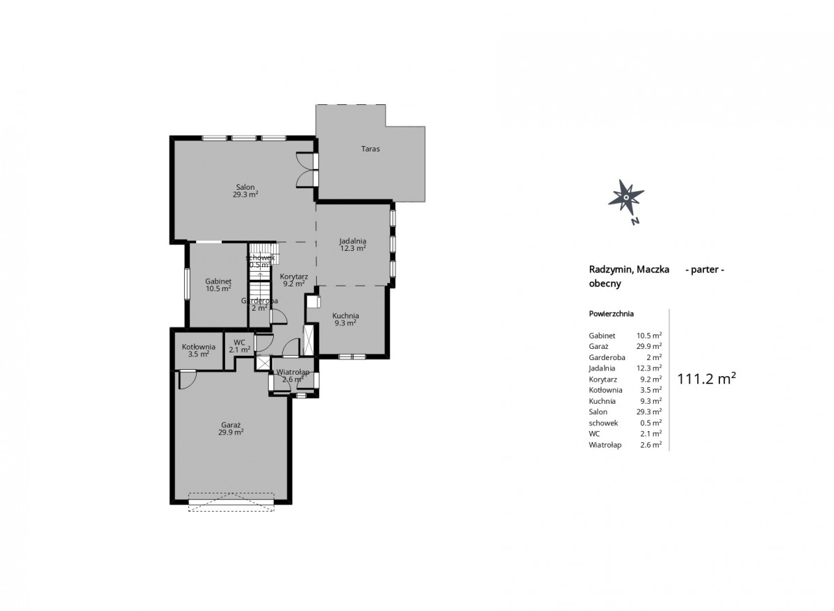- parter o powierzchni użytkowej 111,25 m2, w tym dwustanowiskowy garaż 29,92 m2