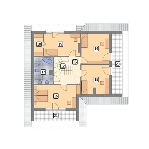 - Centralnie położone schody prowadzące na poddasze, które stanowią oś komunikacyjną dla tego poziomu.