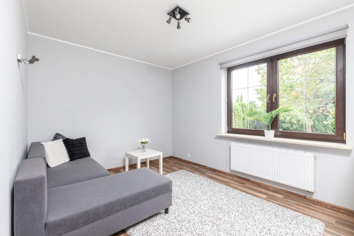 - Dwuosobowa sypialnia lub gabinet. Jest to idealne miejsce dla rodziców lub gości, zapewniając im prywatność.