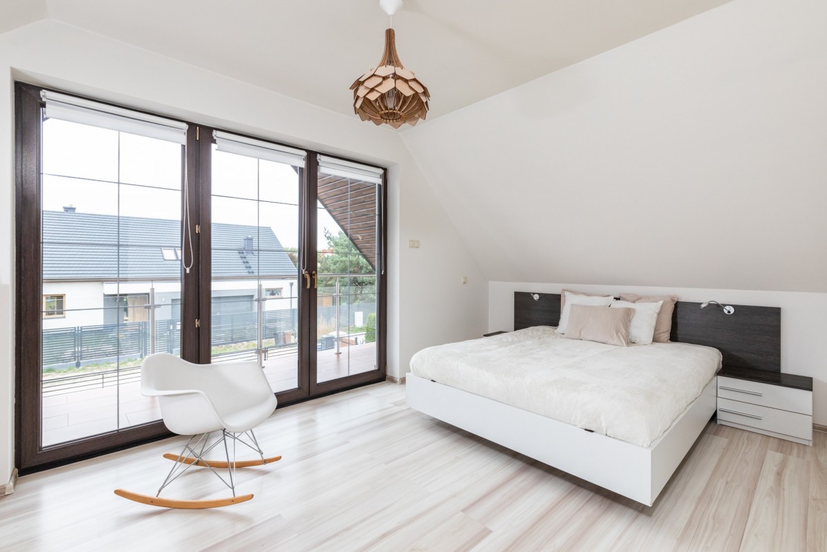 - Główna sypialnia rodziców to przestronne i komfortowe miejsce do odpoczynku i relaksu. Jej główną cechą jest duży balkon, który stanowi naturalne przedłużenie przestrzeni sypialnianej i dodaje uroku oraz funkcjonalności,może być wyposażony w wygodne meble na relaks, takie jak stolik i krzesła, co umożliwia rodzicom odpoczynek na świeżym powietrzu. Dzięki temu sypialnia staje się idealnym miejscem do cieszenia się spokojnymi chwilami na świeżym powietrzu, dodając jeszcze większego uroku i komfortu temu już wyjątkowemu pomieszczeniu.
