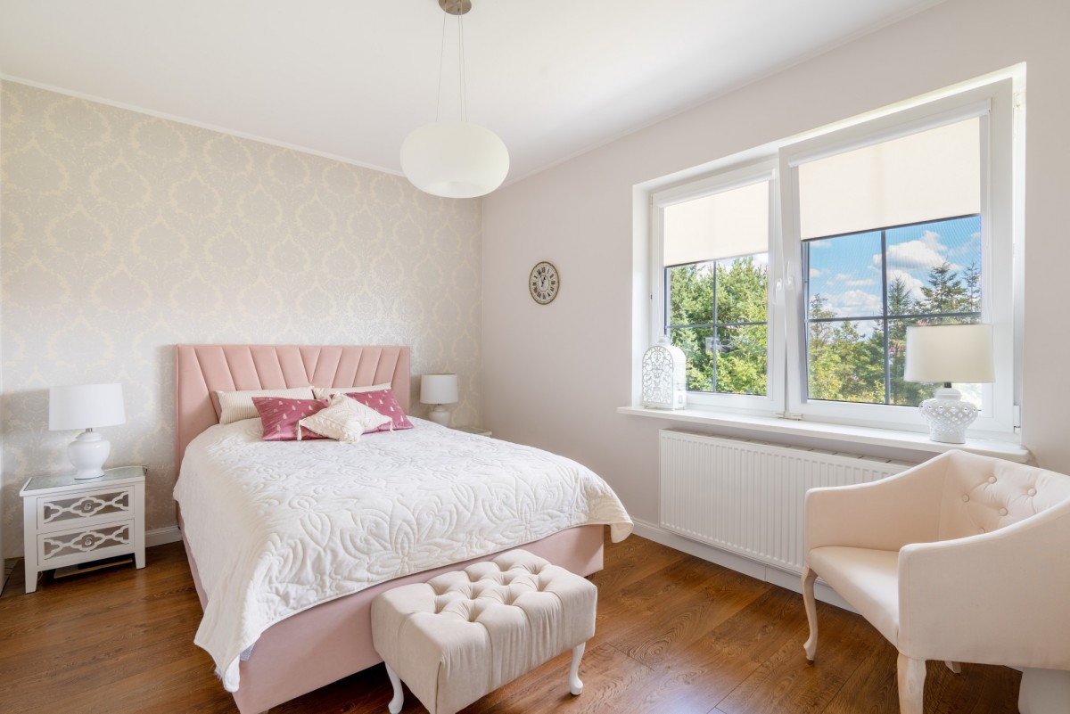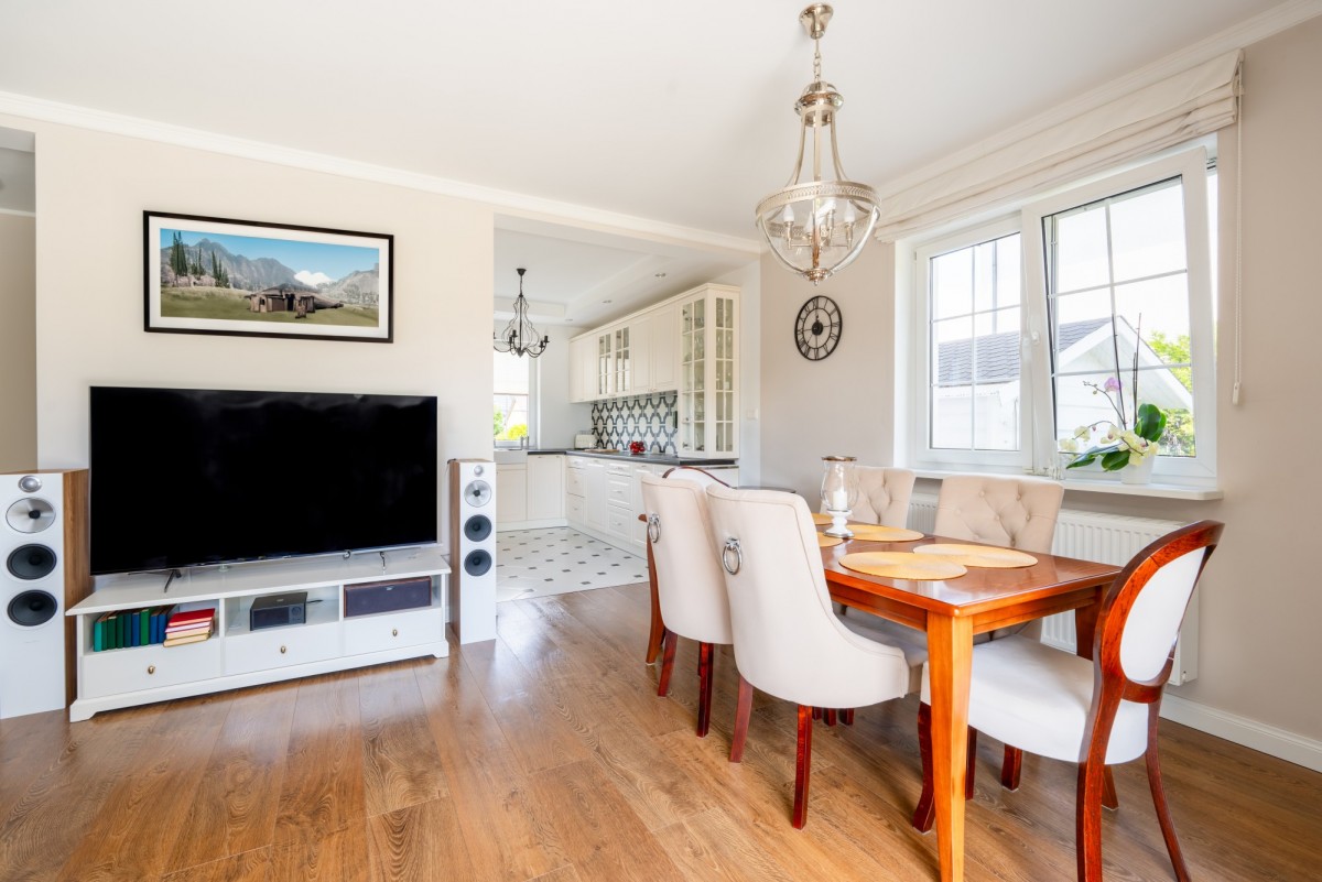 - Salon z otwartą kuchnią, dwie łazienki, jedna z prysznicem, druga z wolno stojącą wanną, 3 sypialnie, z czego jedna z balkonem, wiatrołap, przedpokój, kotłownia i pralnia.