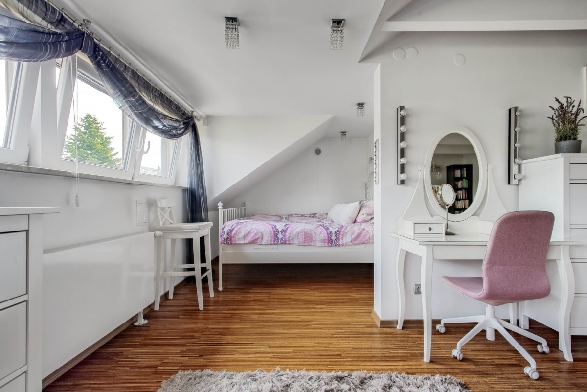 The attic of the house is usable and there is a huge space, a bedroom niche, a wardrobe and a bathroom with a shower.