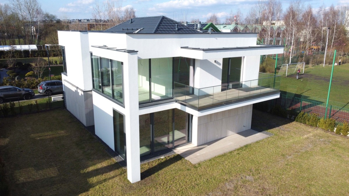 We invite you to explore the offer of a unique, modern detached house located in the exclusive Hampton Residence estate, situated in the heart of Wilanów Town.