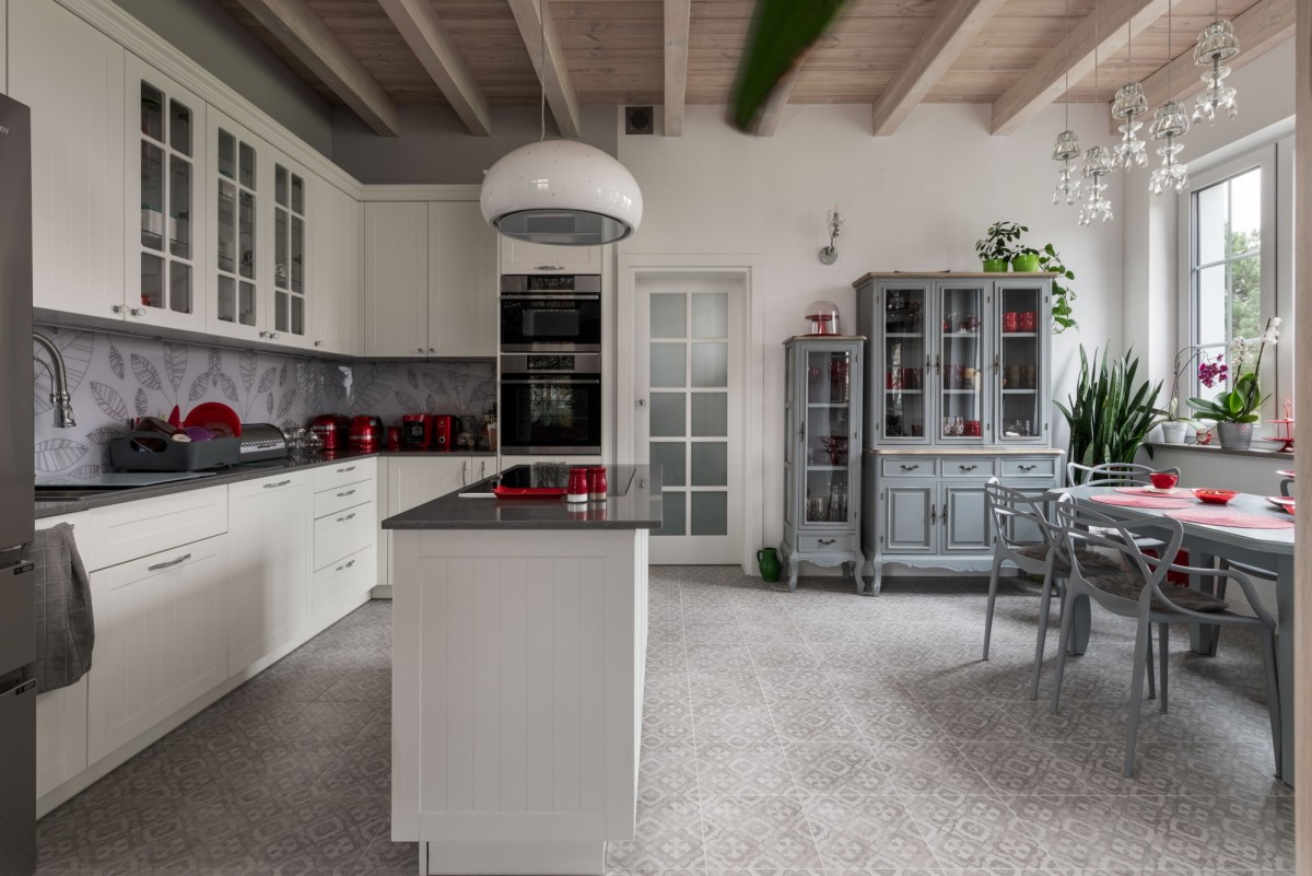 Przestronna kuchnia z częścią jadalną to gratka dla miłośników gotowania. Przemyślany układ pomieszczeń ucieszy osoby praktyczne.
