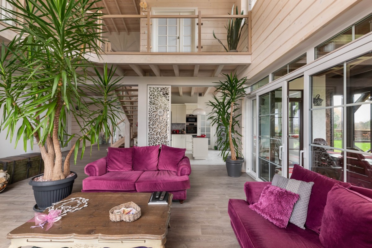 Otwarta przestrzeń, klimatyczne wykończenie i widoczne elementy drewnianej konstrukcji dachu przypadną do gustu osobom o rozwiniętym poczuciu estetyki.