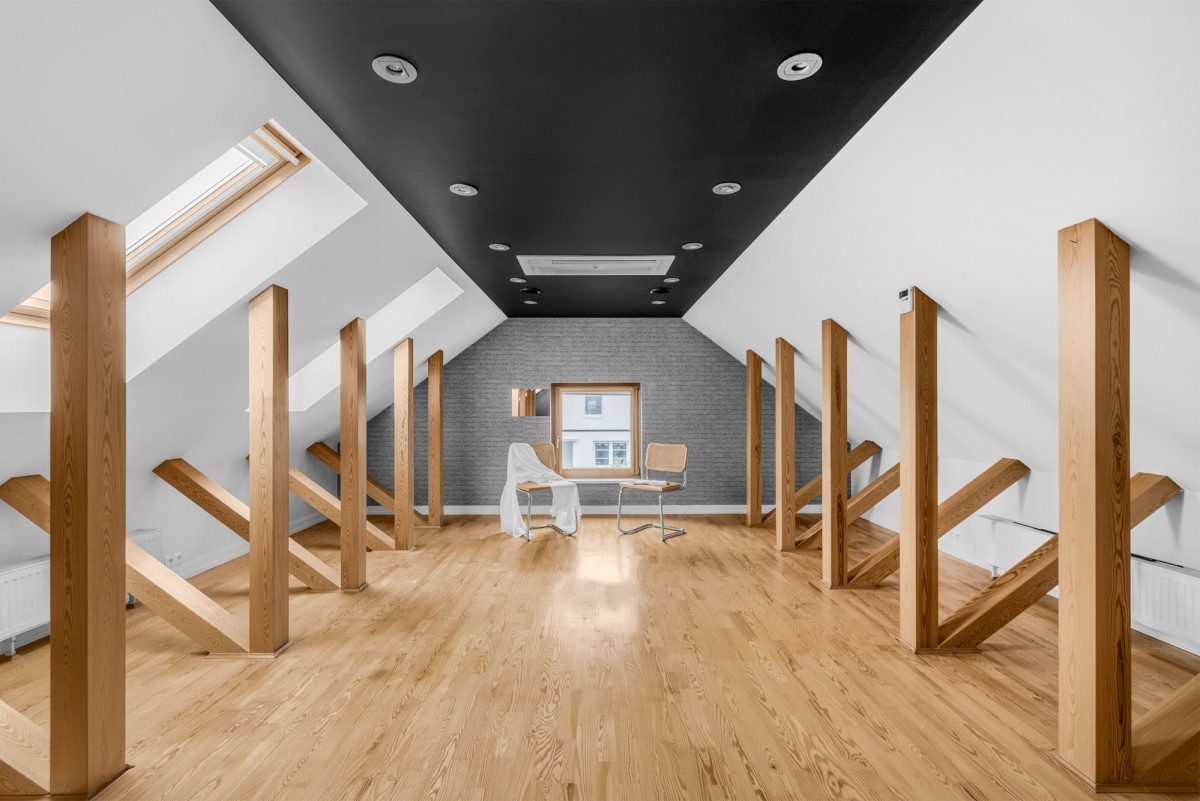 Na ostatnim poziomie znajduje się użytkowe poddasze z: