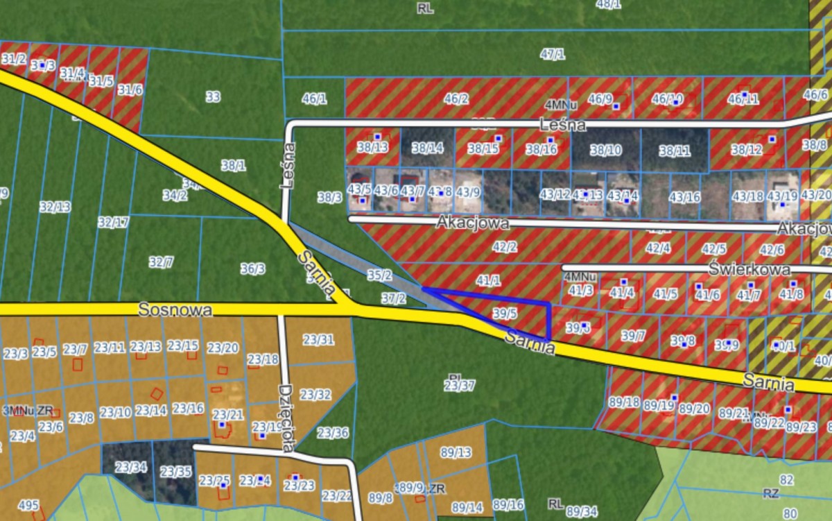 Na działce obowiązują zapisy Miejscowego Planu Zagospodarowania Terenu oznaczone symbolem 4MNU - terenu zabudowy mieszkaniowej o niskiej intensywności jednorodzinnej wolnostojącej lub bliźniaczej.