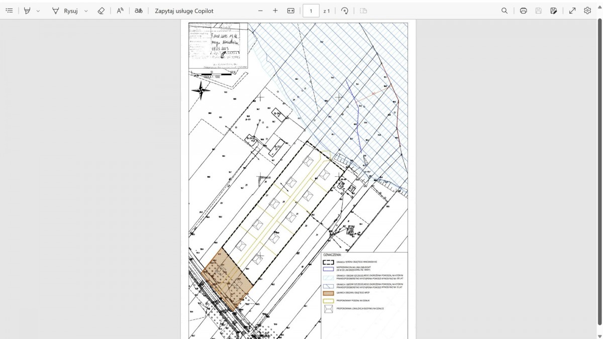 Możesz kupić całość, od razu wydzielić i sprzedać teren budowlany od strony asfaltowej drogi, a dla pozostały teren podzielić na mniejsze działki około 1000m2-1200m2. Patrz analiza możliwości podziału - zdjęcie nr 2. Kolorem żółtym zaznaczono część budowlaną z aktualnym MPZP, a kolorem czerwonym wydzielenia działek 3000m2-5000m2 do uzyskania decyzji o warunkach zabudowy i wtórnego podziału na 1000m2-1200m2. W razie pytań dzwoń :)