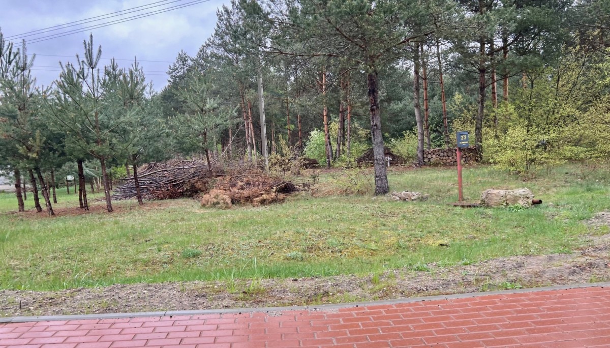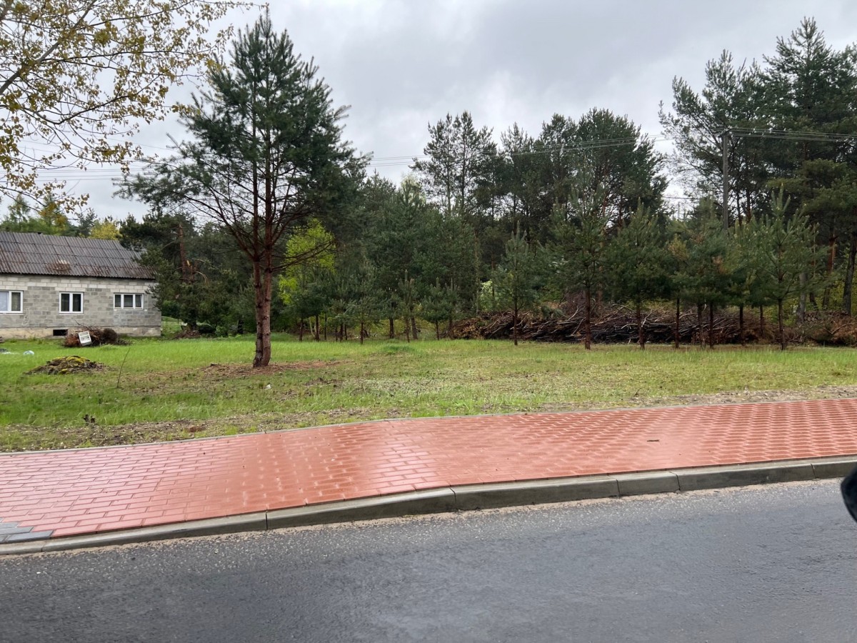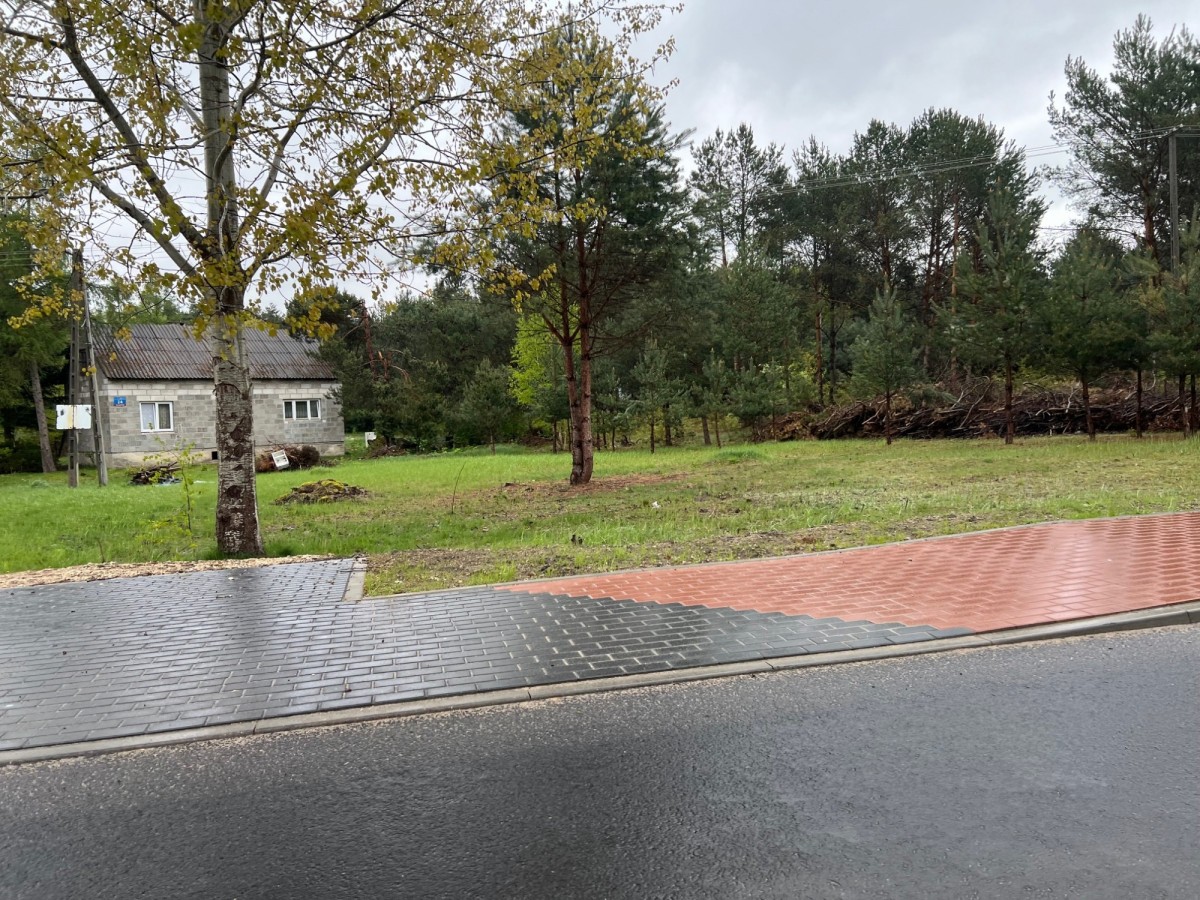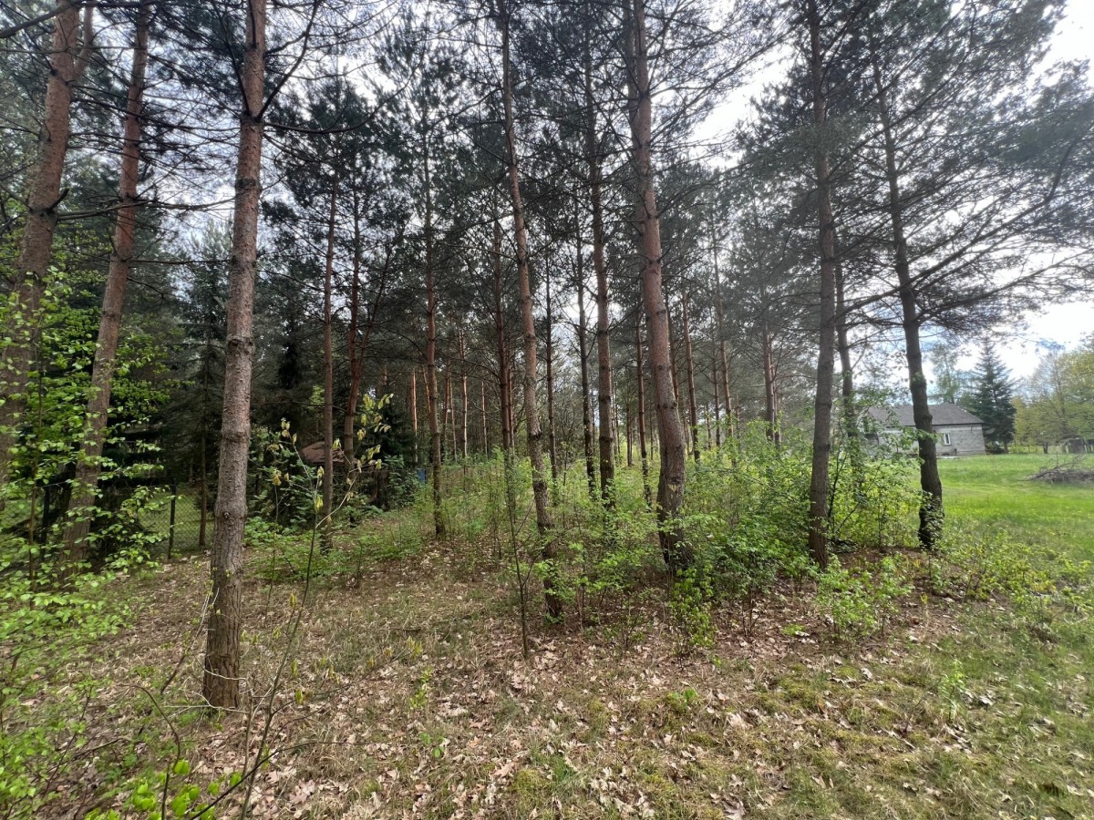 Działka z drzewostanem w postaci wielu sosen i dębów. W 2/3 długości działki przygotowane miejsce pod duży dom. Wjazd do działki jest prosto z nowo wyremontowanej ulicy asfaltowej oraz od drogi gruntowej z końca działki.