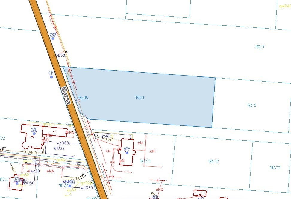 Przed działką znajdują się media takie jak woda i prąd, gaz i światłowód.