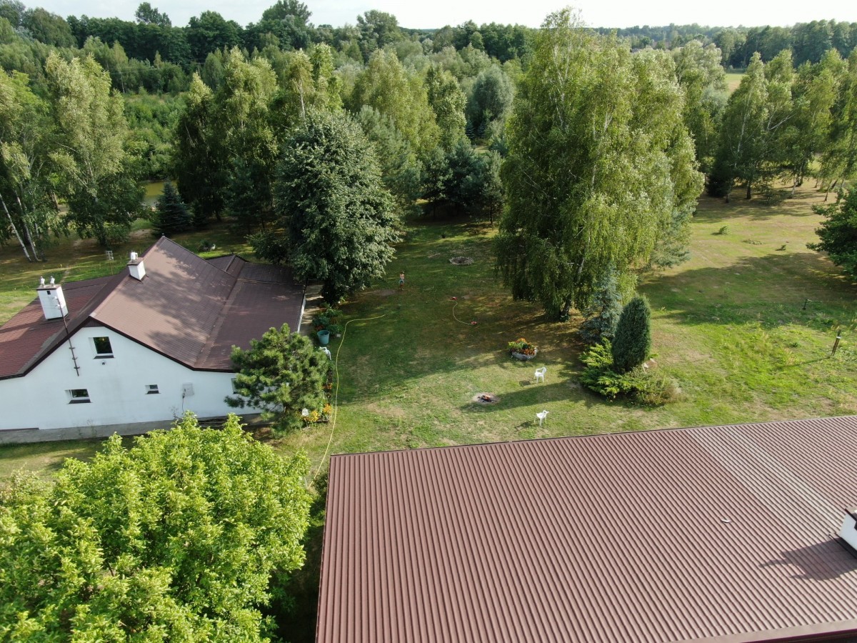 W ofercie dwa domy, których łączna powierzchnia użytkowa oscyluje w granicach 411 m2, dostęp do prywatnego las oraz drewna, staw, sauna nad brzegiem stawu, sad składający się z ok 70 drzew + krzewy, miejsce na ognisko.