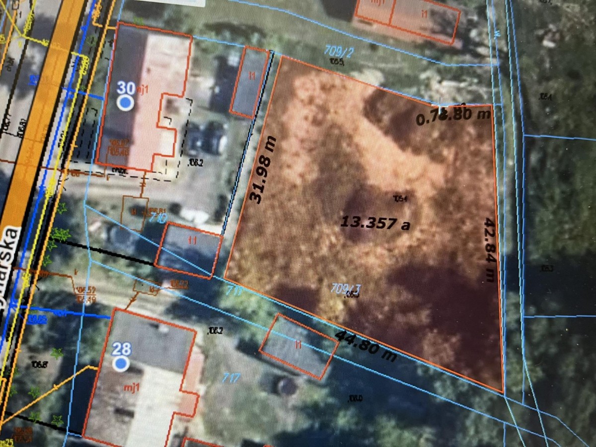 Orientacyjne wymiary (wg geoportal) szerokość 32,4m długość 41,6m, ukształtowanie terenu płaskie
