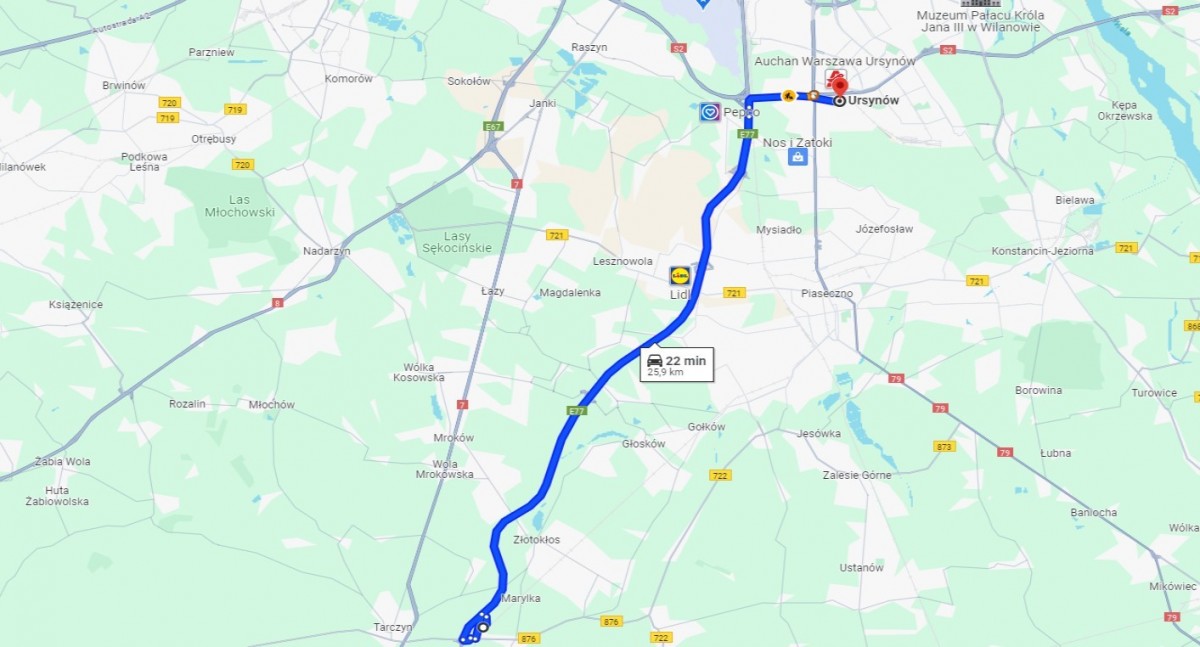 - 15 -20 minut do Lotniska Chopina, 30 minut do Urzędu Dzielnicy Ursynów (alternatywnie - Aleja Krakowska)