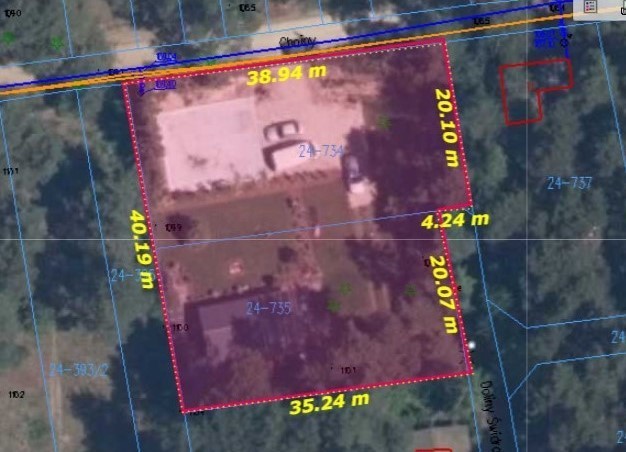 • Nieruchomość składa się z dwóch działek: nr 734 i 735, obręb 0024. (jedna KW) Identyfikatory działek: 141708_2.0024.734 oraz 141708_2.0024.735
