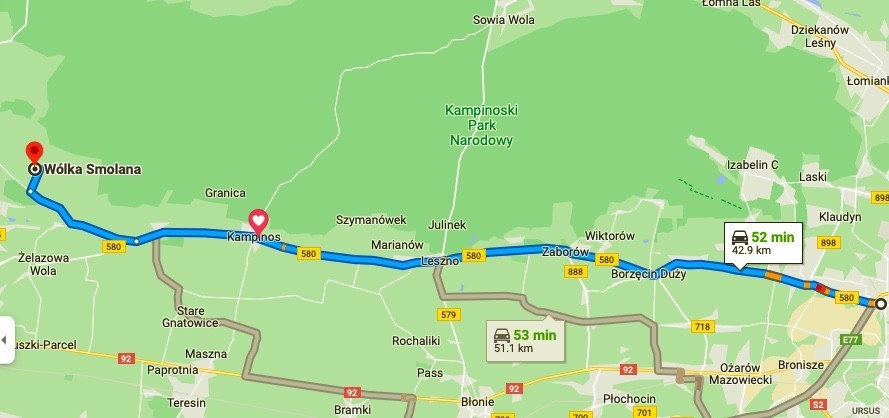 Bardzo dobry dojazd do Warszawy przez Kampinos i Leszno (42 km); tylko 12 km do Sochaczewa.