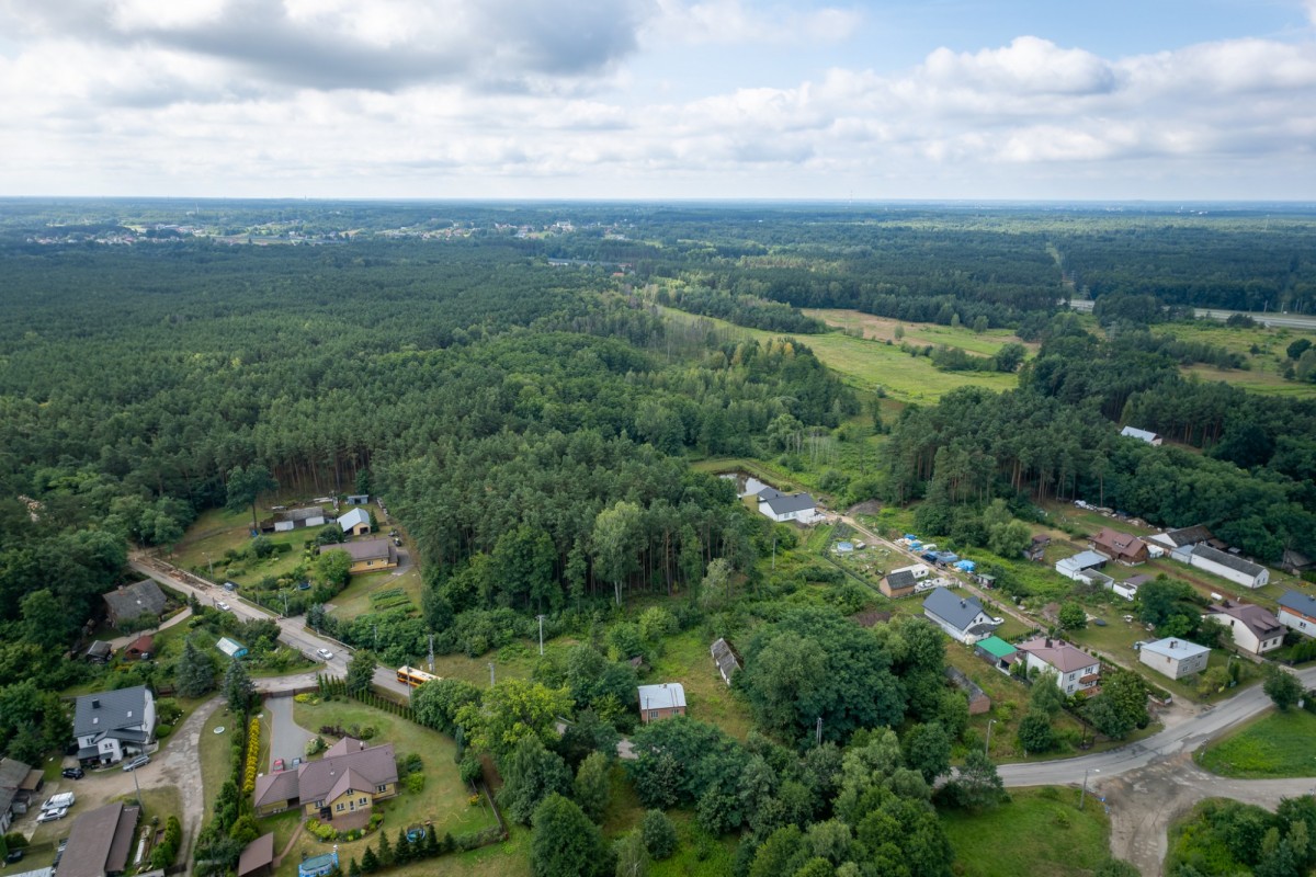 Jest tu przestrzennie i bardzo zielono, a sąsiadująca z działką ściana lasu liściastego dodatkowo tę zieleń podbija. Na działce jest też rów melioracyjny (obecnie suchy), dzięki czemu nie jest to teren podmokły.