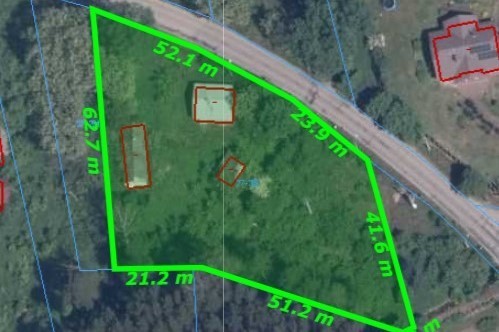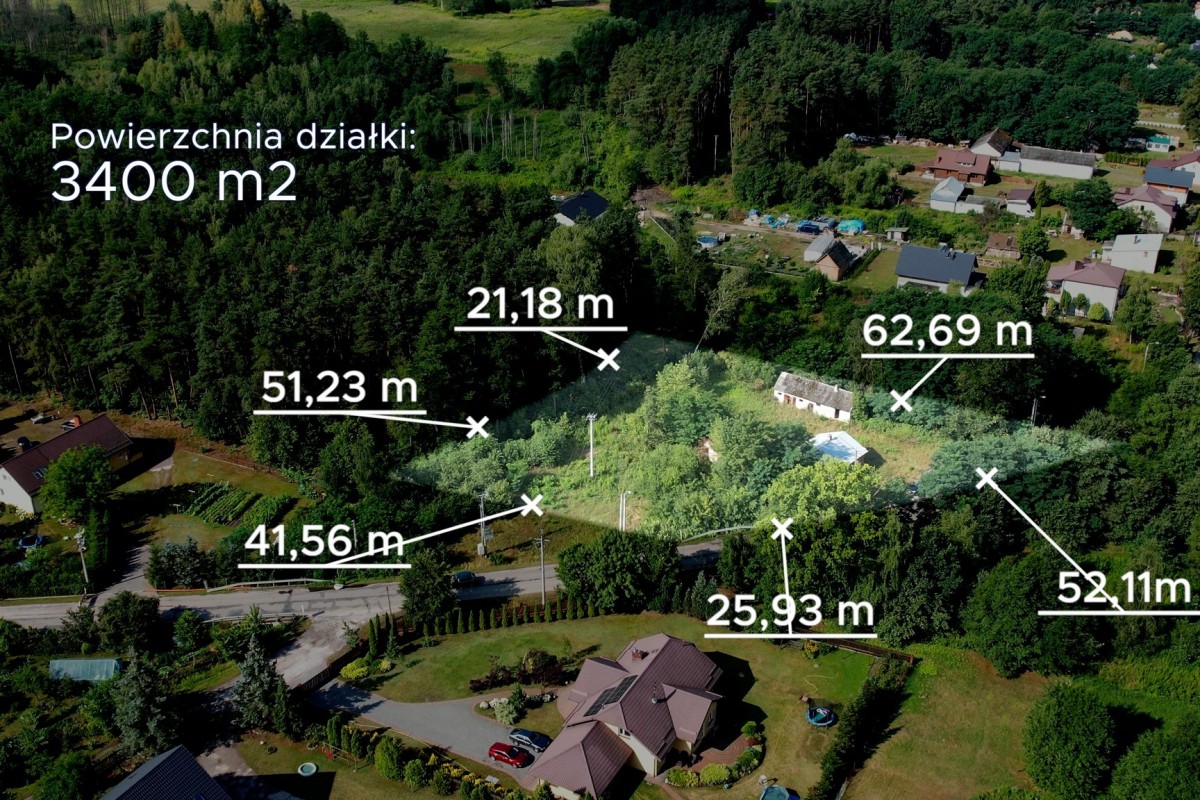 Działka ma kształt nieregularny, zbliżony do kwadratu. Szerokość to ok. 70m, długość ok. 60m z jednego boku i 40m z drugiego.