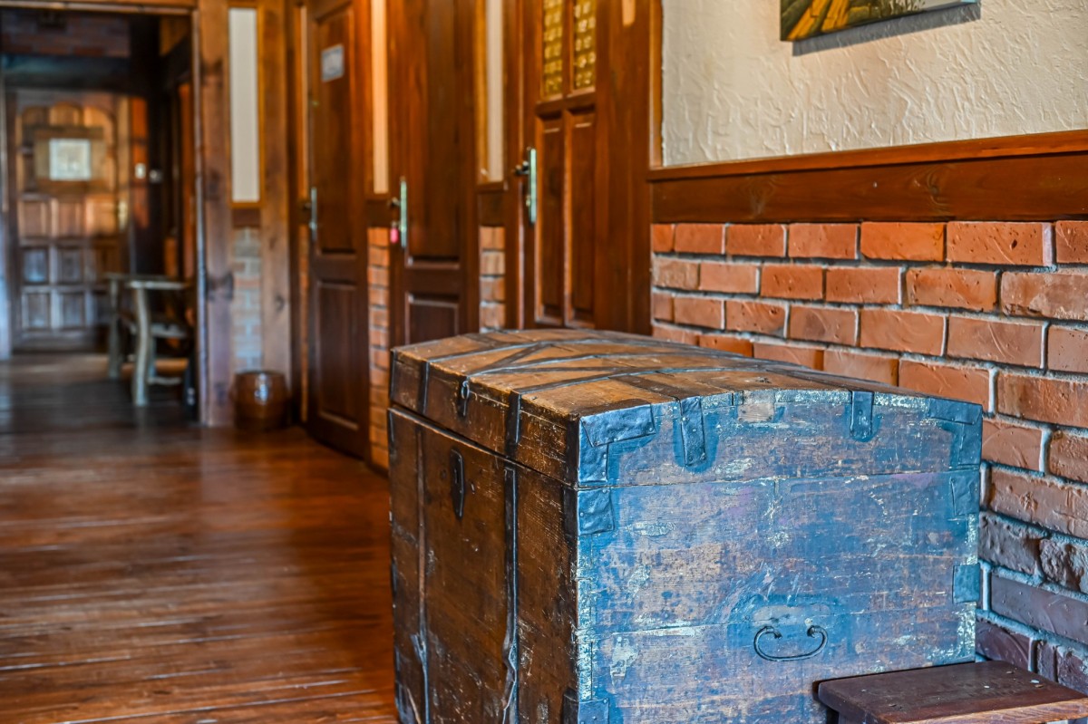 Na piętrze do dyspozycji gości jest 11 pokoi mogących pomieścić 26 osób. Dodatkowo dla umilenia pobytu gości w pensjonacie, stworzono wspólną część wypoczynkową z kominkiem i pokojem gier.