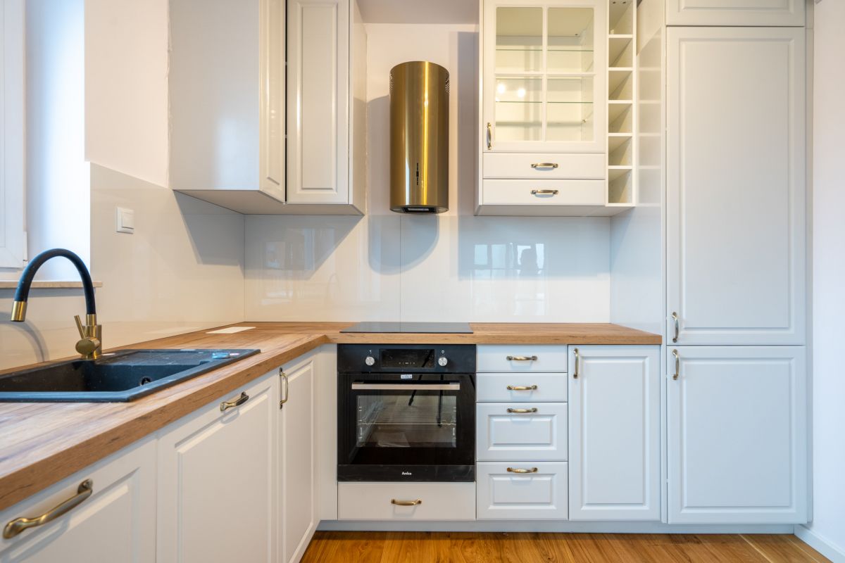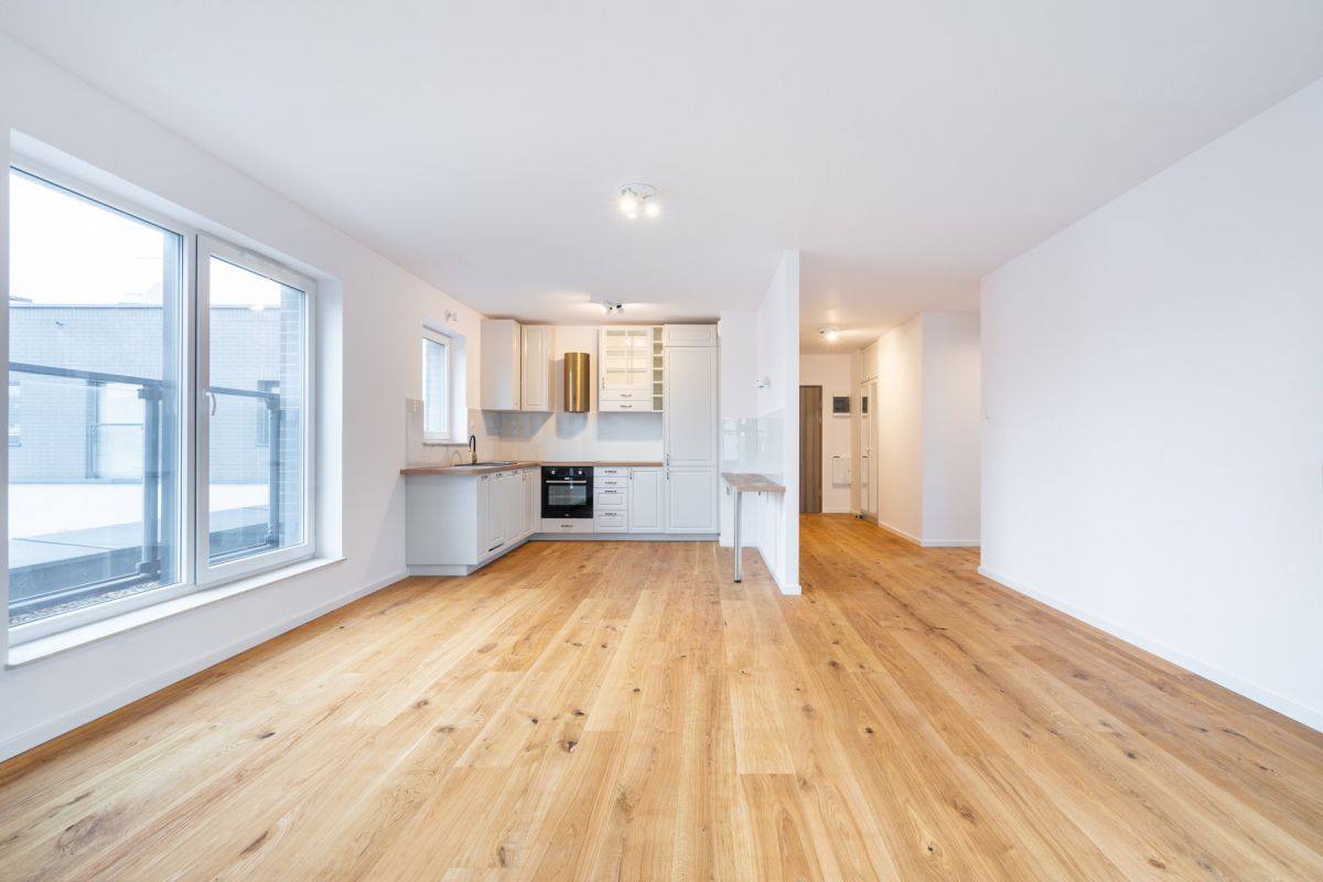 W pełni wyposażona kuchnia i łazienka. Powierzchnia salonu i dwóch oddzielnych pokoi jest wolną przestrzenią do własnej aranżacji. Duże okna we wszystkich pomieszczeniach dostarczają sporo dziennego światła do wnętrza. Cała powierzchnia apartamentu to piękna drewniana podłoga.
