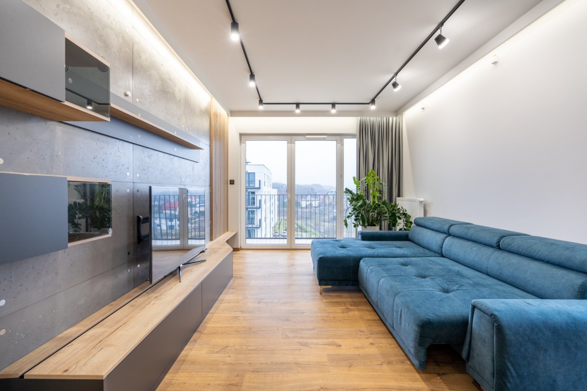 * wygodnej strefy dziennej z komfortową przestrzenią do wypoczynku oraz wyjściem na balkon,