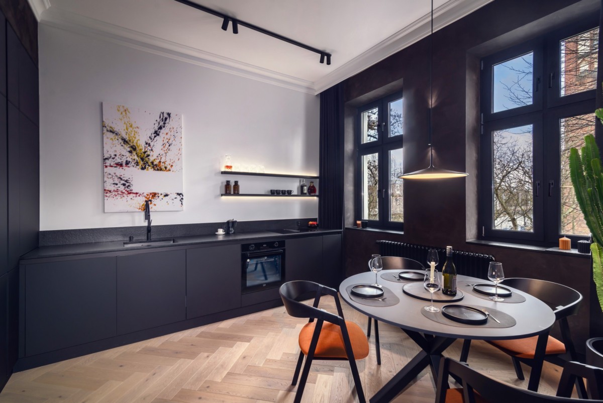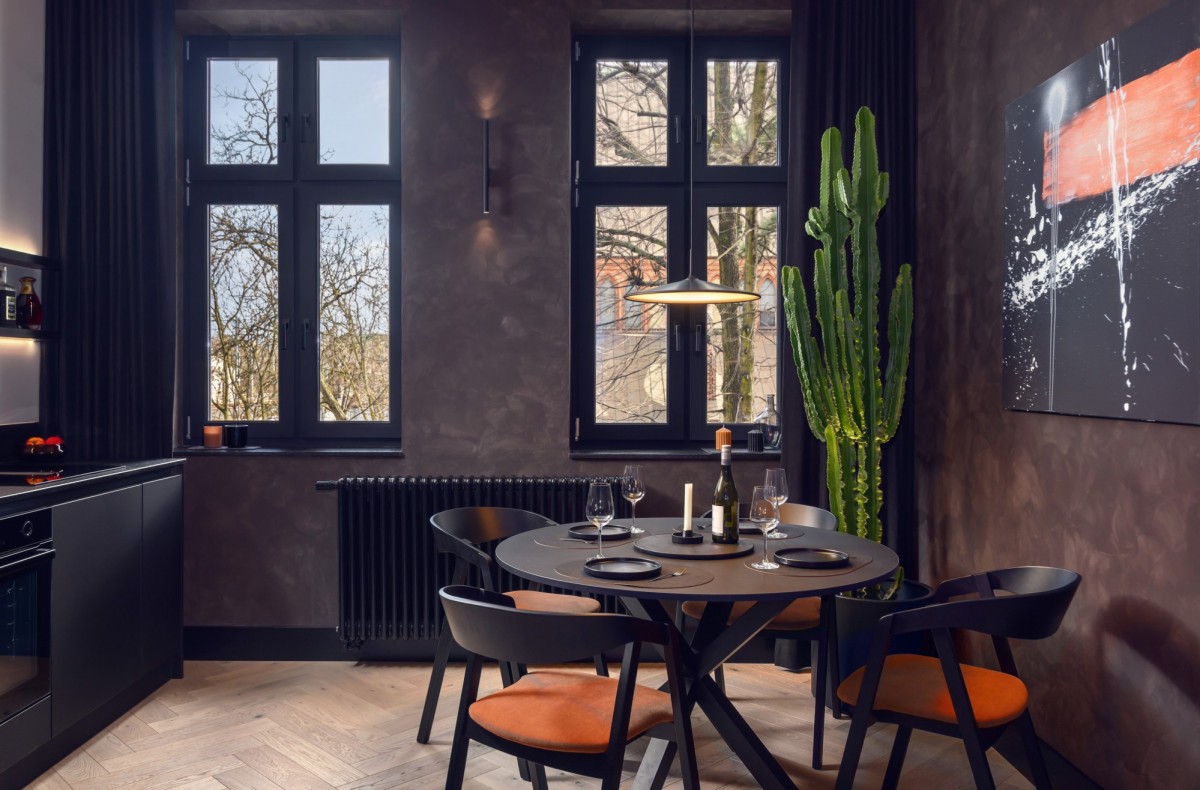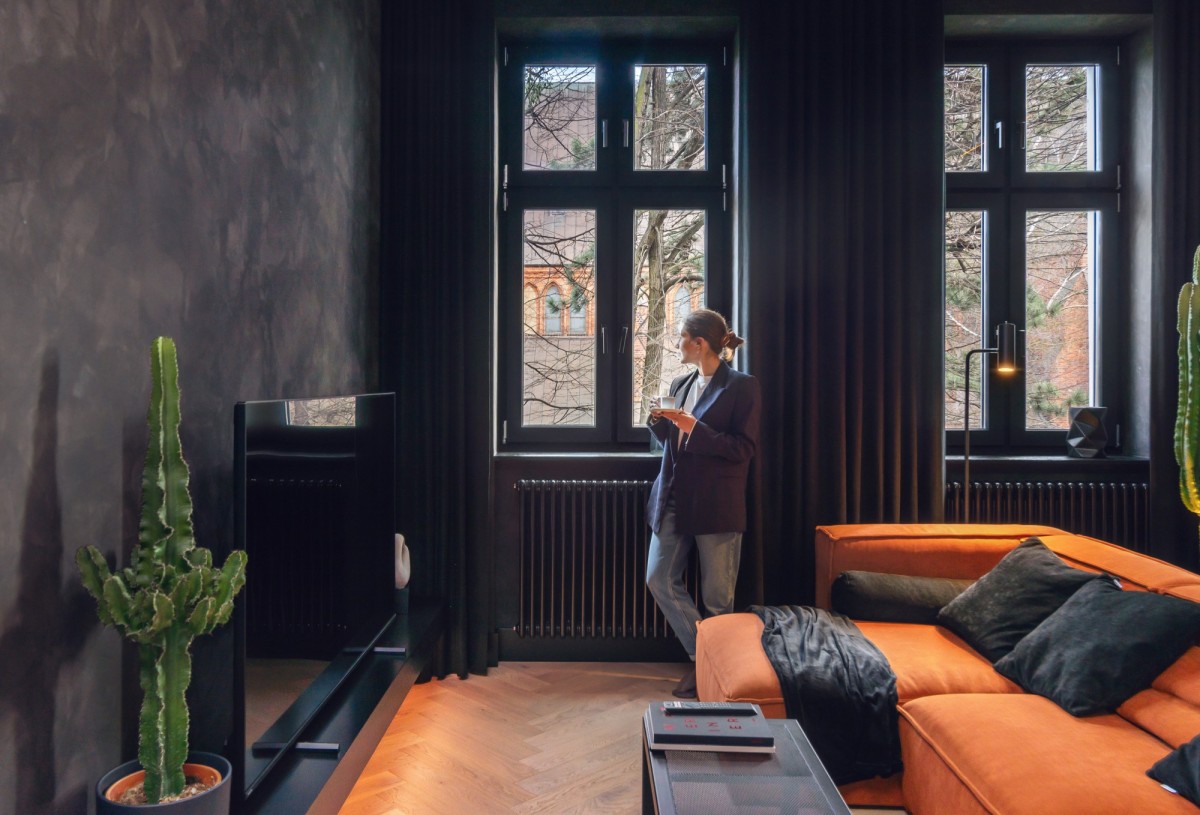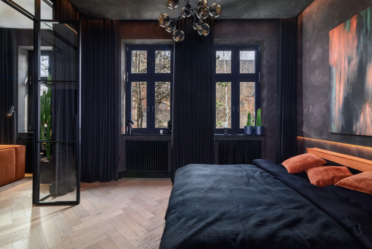 Przestronne, nietuzinkowe mieszkanie o pow. 63m2, położone na 1 piętrze. Nieruchomość przeszła generalny remont, została wykończona z dbałością o każdy detal, z wykorzystaniem wysokiej jakości materiałów, zgodnie z projektem architekta. Ponadstandardowa wysokość pomieszczeń - ok. 3,3 m., ciemna kolorystyka wnętrza oraz drewniana, bielona podłoga sprawiają, że to miejsce jest jedyne w swoim rodzaju. W mieszkaniu zostały zaaranżowane 3 pokoje: przestronny salon, za przeszkloną ścianą duża sypialnia z garderobą oraz oddzielna, w pełni wyposażona kuchnia. W łazience został zaprojektowany duży walk-in. Dodatkowymi atutami nieruchomości są trzyszybowe okna, malowane natryskowo w kolorze ścian, wygłuszone i docieplone ściany od wewnątrz, kamienne parapety i blaty kuchenne, zdalne sterowanie ogrzewaniem oraz oświetleniem, przygotowane łącze światłowodowe. Mieszkanie nigdy nie było zamieszkane, nie wymaga dodatkowych nakładów finansowych i jest gotowe do wydania od zaraz.