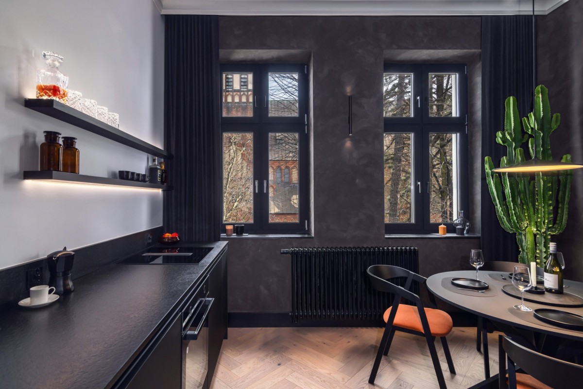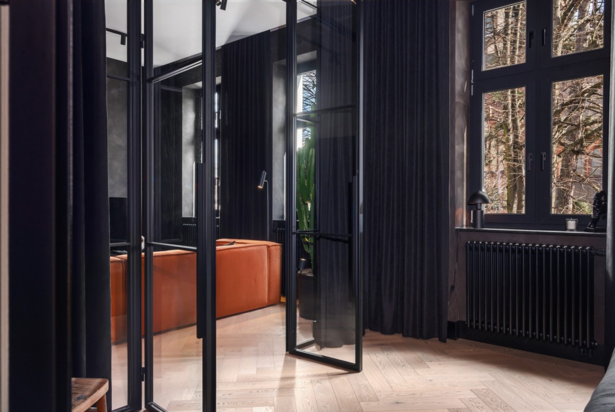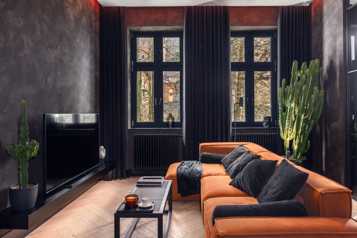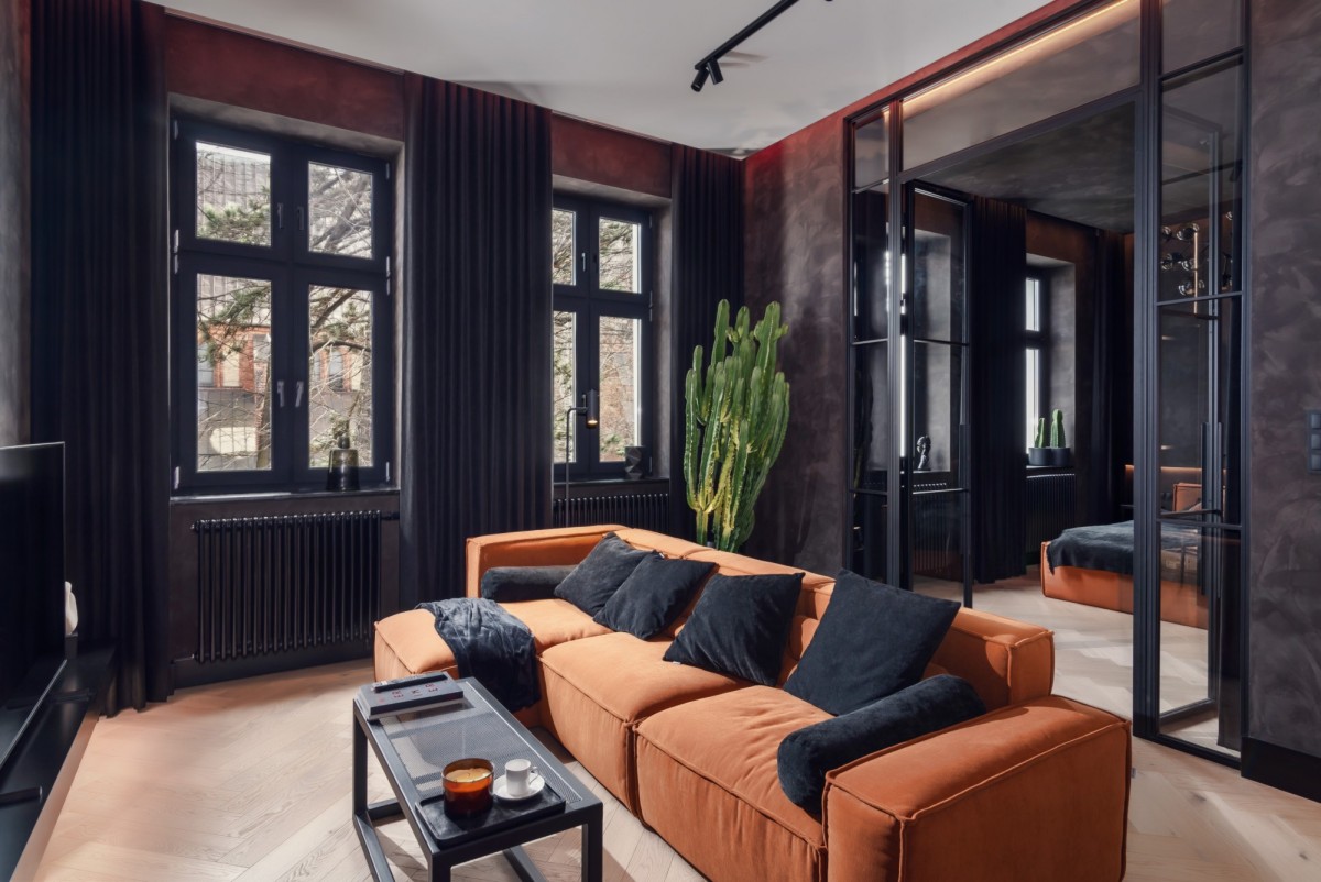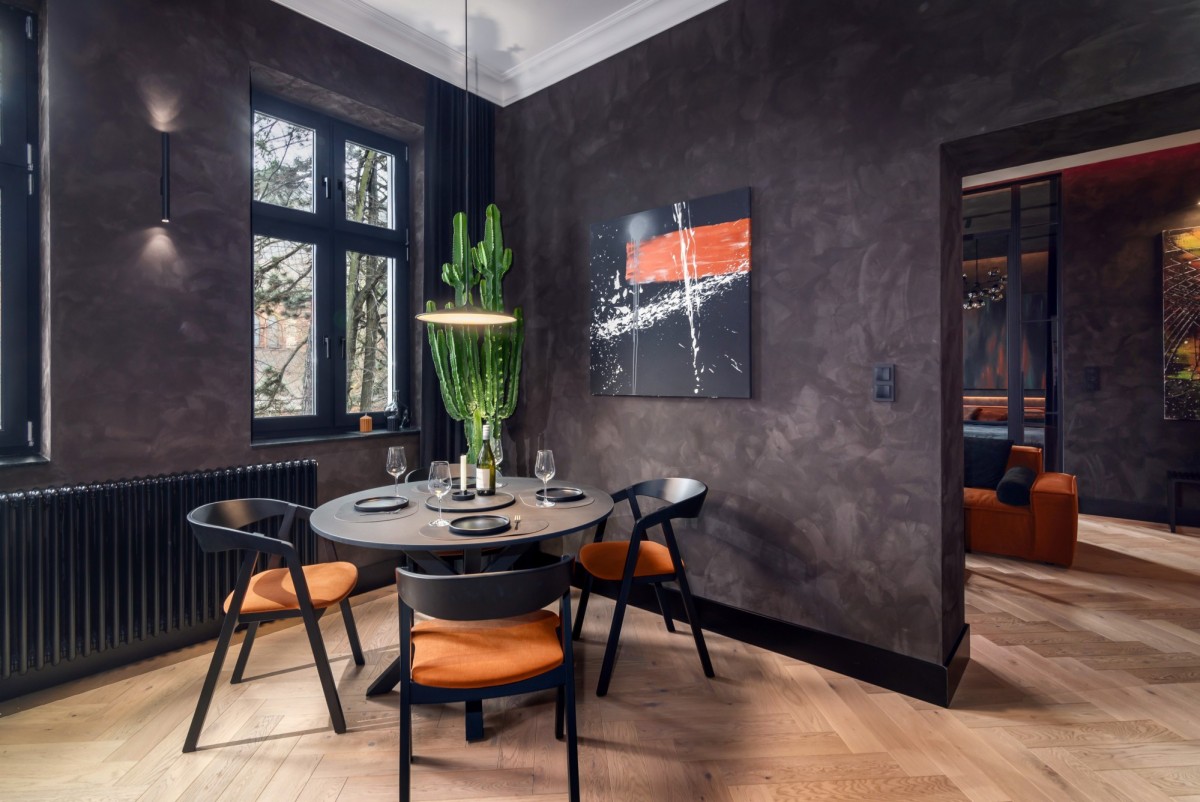 Przestronne, nietuzinkowe mieszkanie o pow. 63m2, położone na 1 piętrze. Nieruchomość przeszła generalny remont, została wykończona z dbałością o każdy detal, z wykorzystaniem wysokiej jakości materiałów, zgodnie z projektem architekta. Ponadstandardowa wysokość pomieszczeń - ok. 3,3 m., ciemna kolorystyka wnętrza oraz drewniana, bielona podłoga sprawiają, że to miejsce jest jedyne w swoim rodzaju. W mieszkaniu zostały zaaranżowane 3 pokoje: przestronny salon, za przeszkloną ścianą duża sypialnia z garderobą oraz oddzielna, w pełni wyposażona kuchnia. W łazience został zaprojektowany duży walk-in. Dodatkowymi atutami nieruchomości są trzyszybowe okna, malowane natryskowo w kolorze ścian, wygłuszone i docieplone ściany od wewnątrz, kamienne parapety i blaty kuchenne, zdalne sterowanie ogrzewaniem oraz oświetleniem, przygotowane łącze światłowodowe. Mieszkanie nigdy nie było zamieszkane, nie wymaga dodatkowych nakładów finansowych i jest gotowe do wydania od zaraz.
